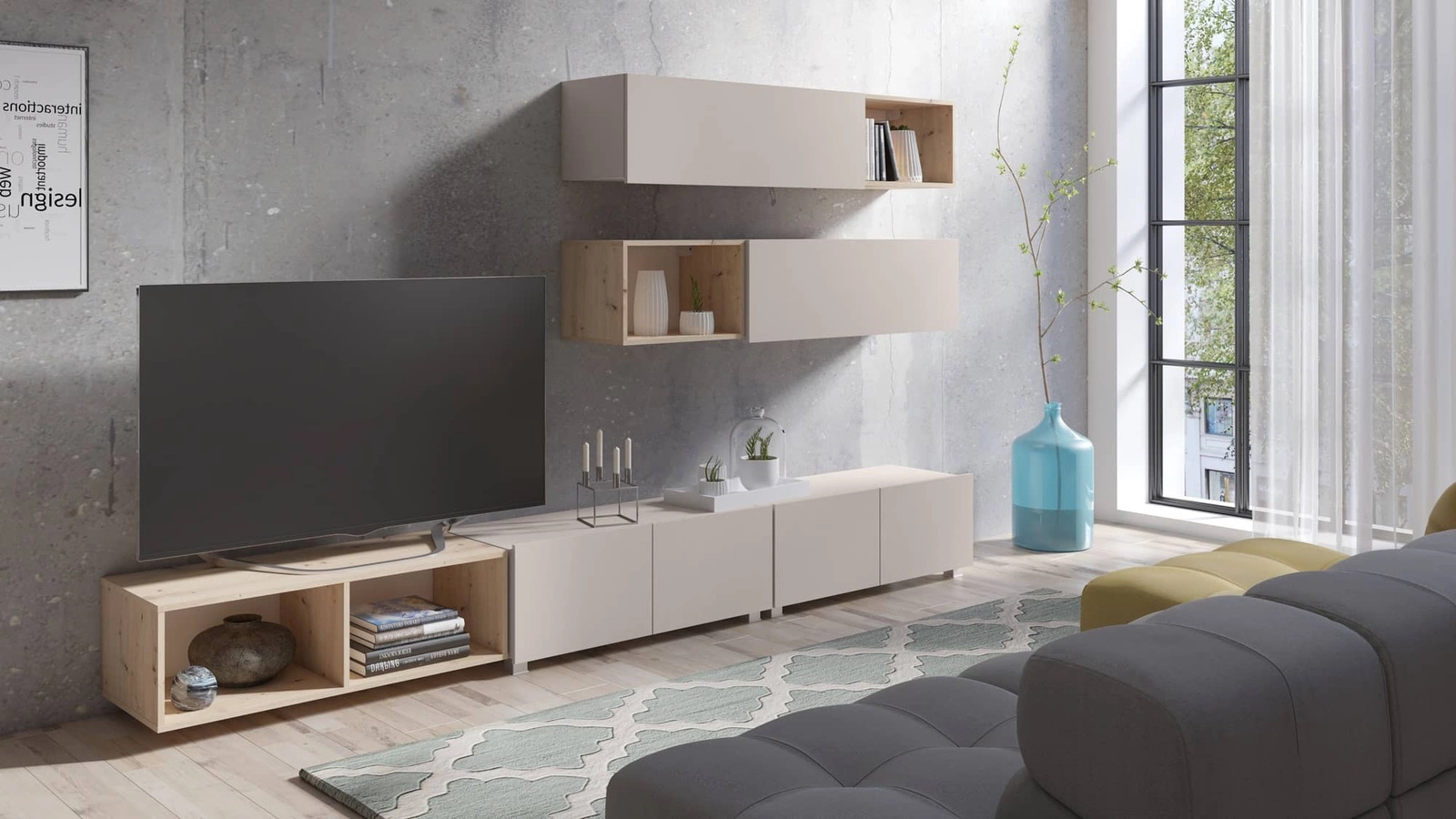 Meblościanka Apulia w kolorze beżowym to nowoczesny design mebla, który stanie się stylowym wykończeniem wnętrza.