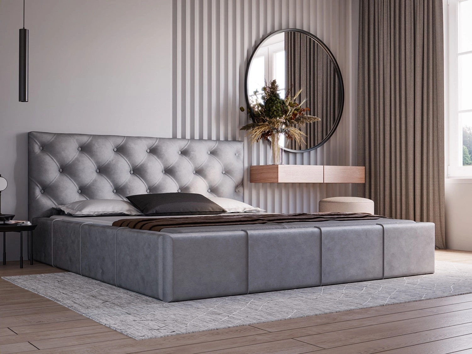 Łóżko tapicerowane Eliza 180x200 w kolorze szarym to idealne rozwiązanie do sypialni urządzonej w stylu nowoczesnym, skandynawskim oraz klasycznym.