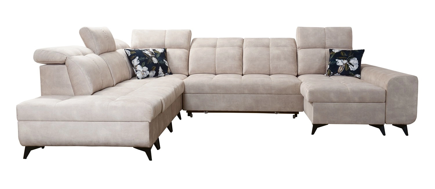 Narożnik Buffalo X w kolorze beżowym z regulowanymi zagłówkami to ciekawie prezentujący się mebel o eleganckim wykończeniu.