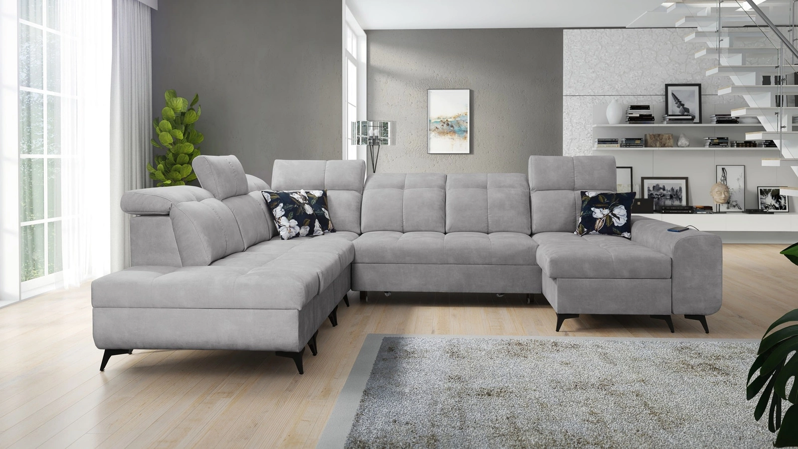 Narożnik Buffalo X w kolorze szary popiel z regulowanymi zagłówkami to ciekawie prezentujący się mebel o eleganckim wykończeniu.