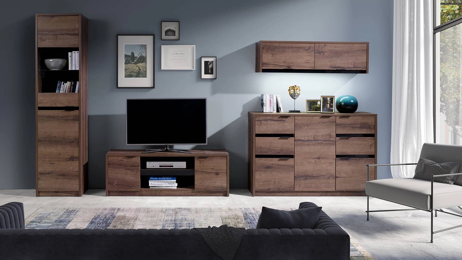 Zestaw mebli do salonu Denver w kolorze dąb monastery / czarny połysk Meblościanka do salonu Meblościanka do pokoju dziennego