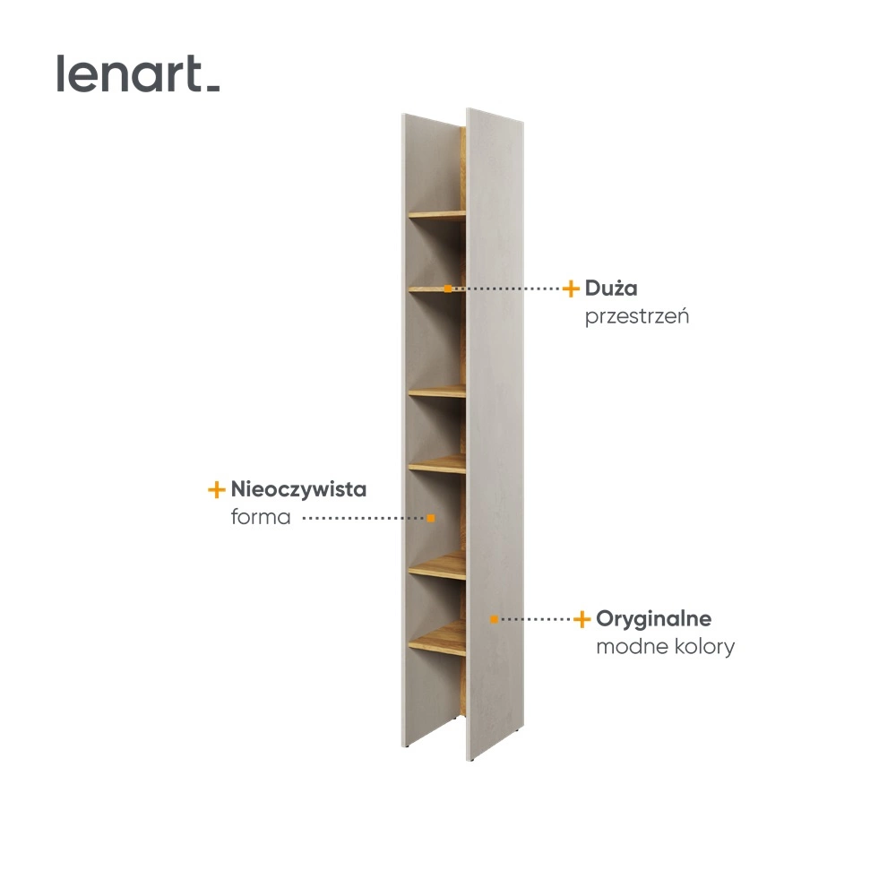 Solidne i staranne wykończenie sprawia, że mebel będzie służyć przez wiele lat, zachowując swoją funkcjonalność i estetykę. Połączenie szarości i dekoru o barwie drewna sprawia, że regały na książki z kolekcji Teen Flex świetnie sprawdzą się jako regał do salonu, regał biurowy lub regał do pokoju dziennego.