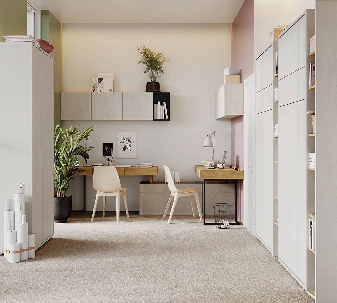 Zestaw mebli Teen Flex pomoże w uprządkowaniu akcesoriów oraz wszystkich niezbędnych rzeczy w pokoju, dodatkowo czyniąc wnętrze lepiej zorganizowanym oraz zapewni komfortową strefę do nauki. Obecność meblościanki stanie się stylowym wykończeniem pokoju młodzieżowego, gabinetu lub biura nadając charakteru i niepowtarzalnego klimatuDesignerski styl to zasługa modnych, oryginalnych kolorów i nieoczywistej formy, które dodają aranżacji estetycznego wyglądu, a także industrialnego klimatu. Dzięki uniwersalności i wysokiej funkcjonalności bryły z zestawu mebli Teen Flex można łatwo ustawić w niemal każdym miejscu w pomieszczeniu.