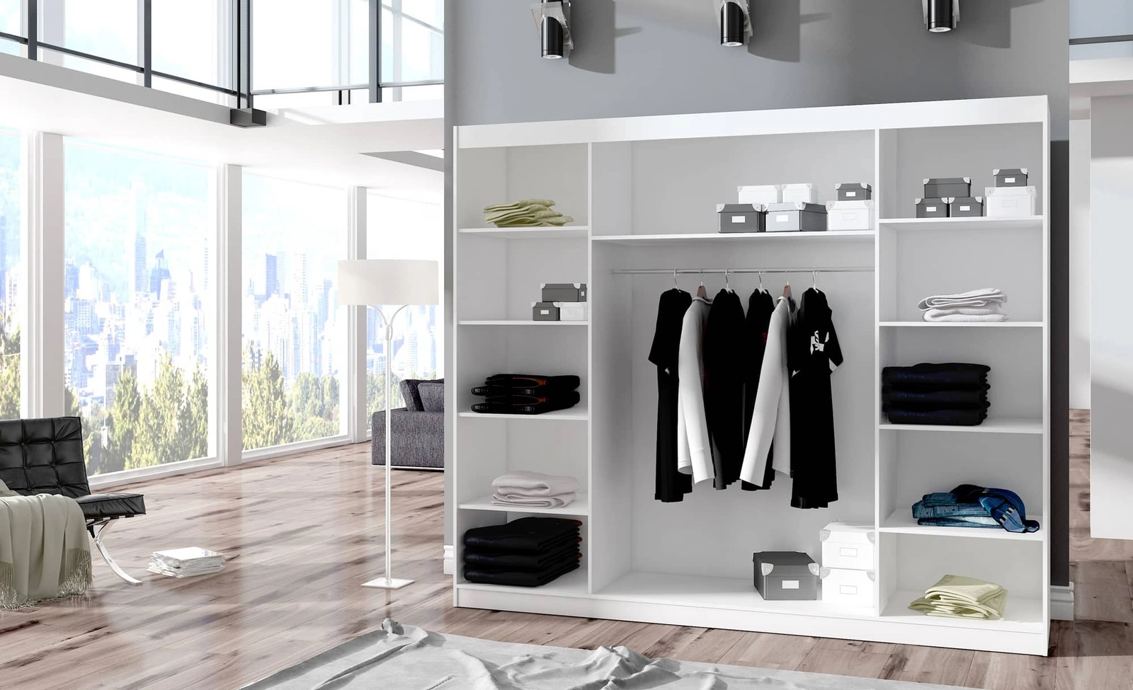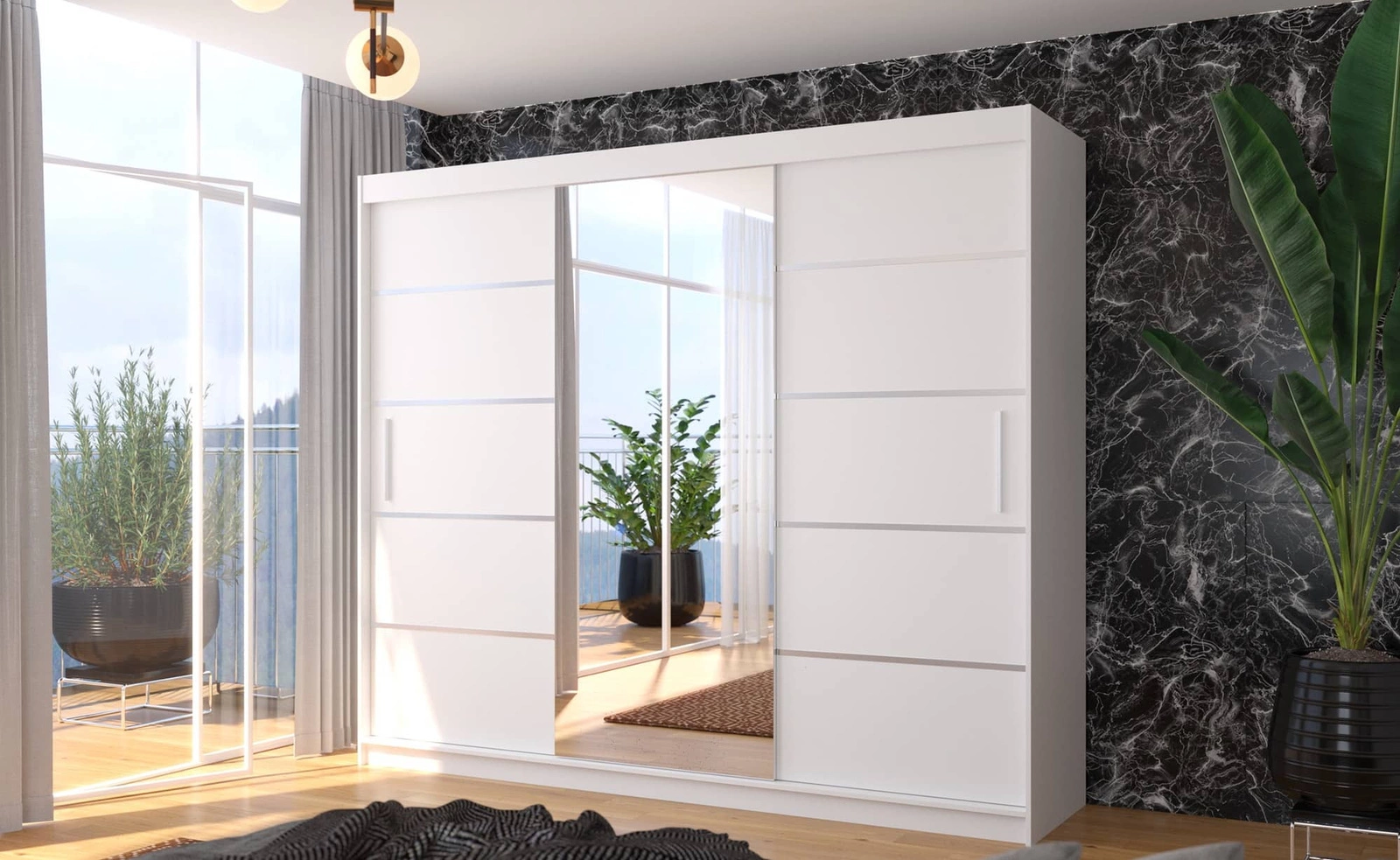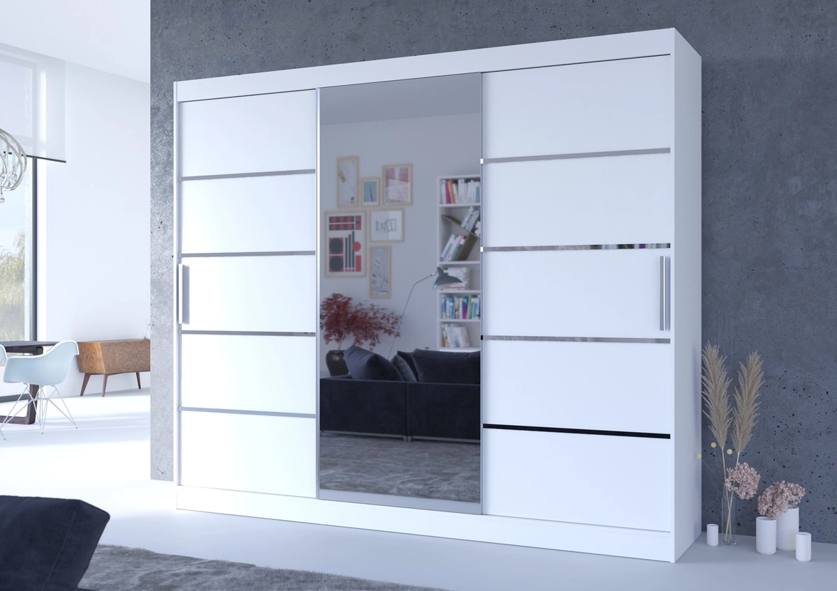 Szafa przesuwna z lustrem Salto 250 cm w kolorze białym to niezbędny element wyposażenia, który odnajdzie się w wielu aranżacjach.
