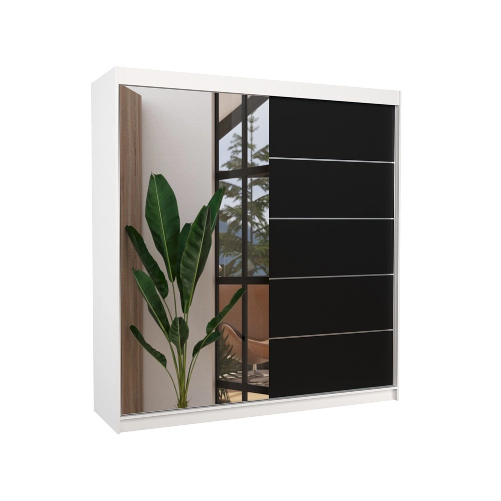 Szafa przesuwna z lustrem Oliver 200 cm w kolorze biały / czarny to niezbędny element wyposażenia, który odnajdzie się w wielu aranżacjach.