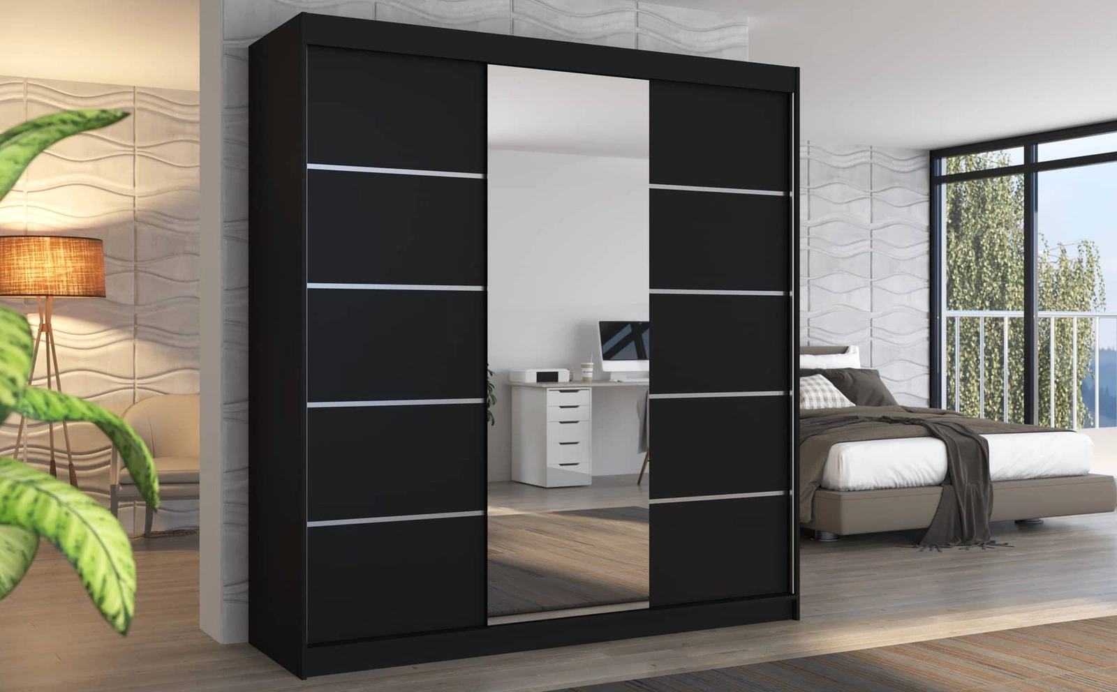 Szafa przesuwna z lustrem Bergen 200 cm w kolorze czarnym to niezbędny element wyposażenia, który odnajdzie się w wielu aranżacjach.