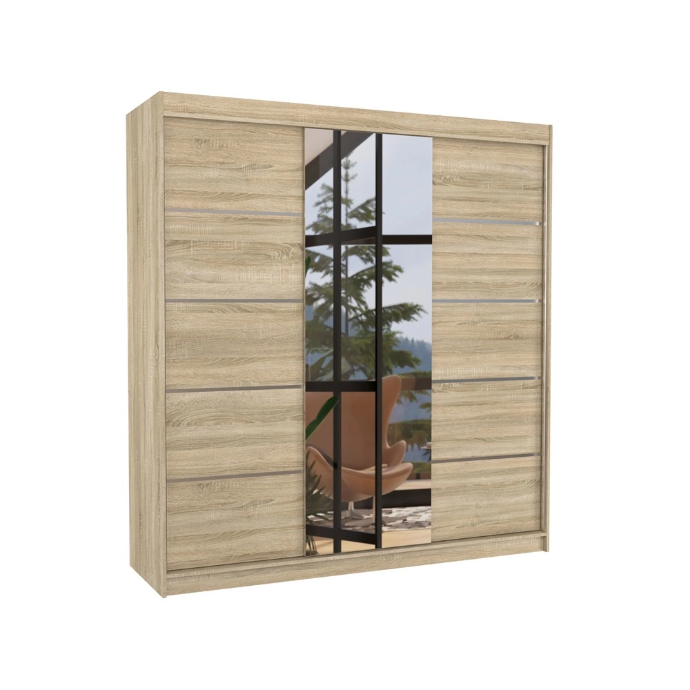Szafa przesuwna z lustrem Bergen 200 cm w kolorze dąb sonoma jasny to niezbędny element wyposażenia, który odnajdzie się w wielu aranżacjach.