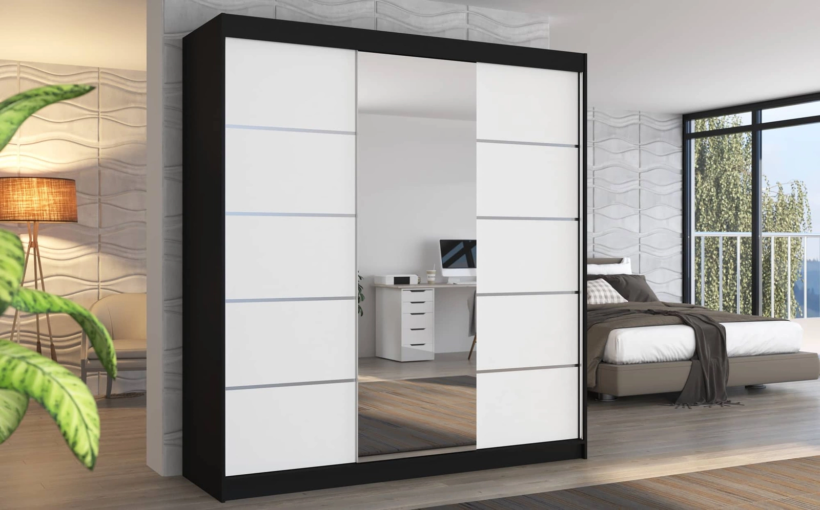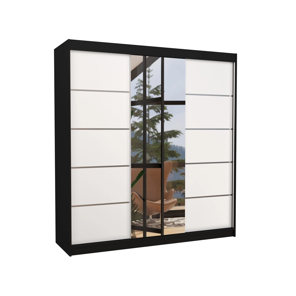 Szafa przesuwna z lustrem Bergen 200 cm w kolorze czarny / biały to niezbędny element wyposażenia, który odnajdzie się w wielu aranżacjach.