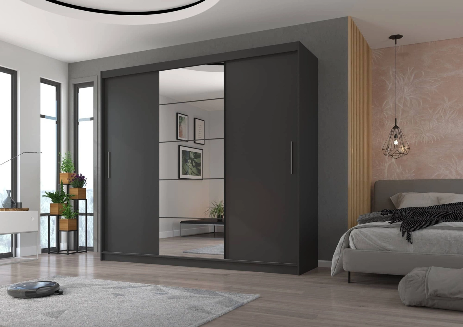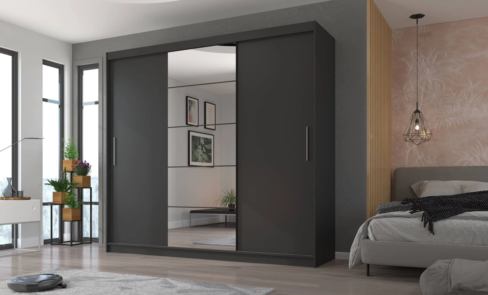 Szafa przesuwna z lustrem Erwin 235 cm w kolorze antracytu to niezbędny element wyposażenia, który odnajdzie się w wielu aranżacjach.