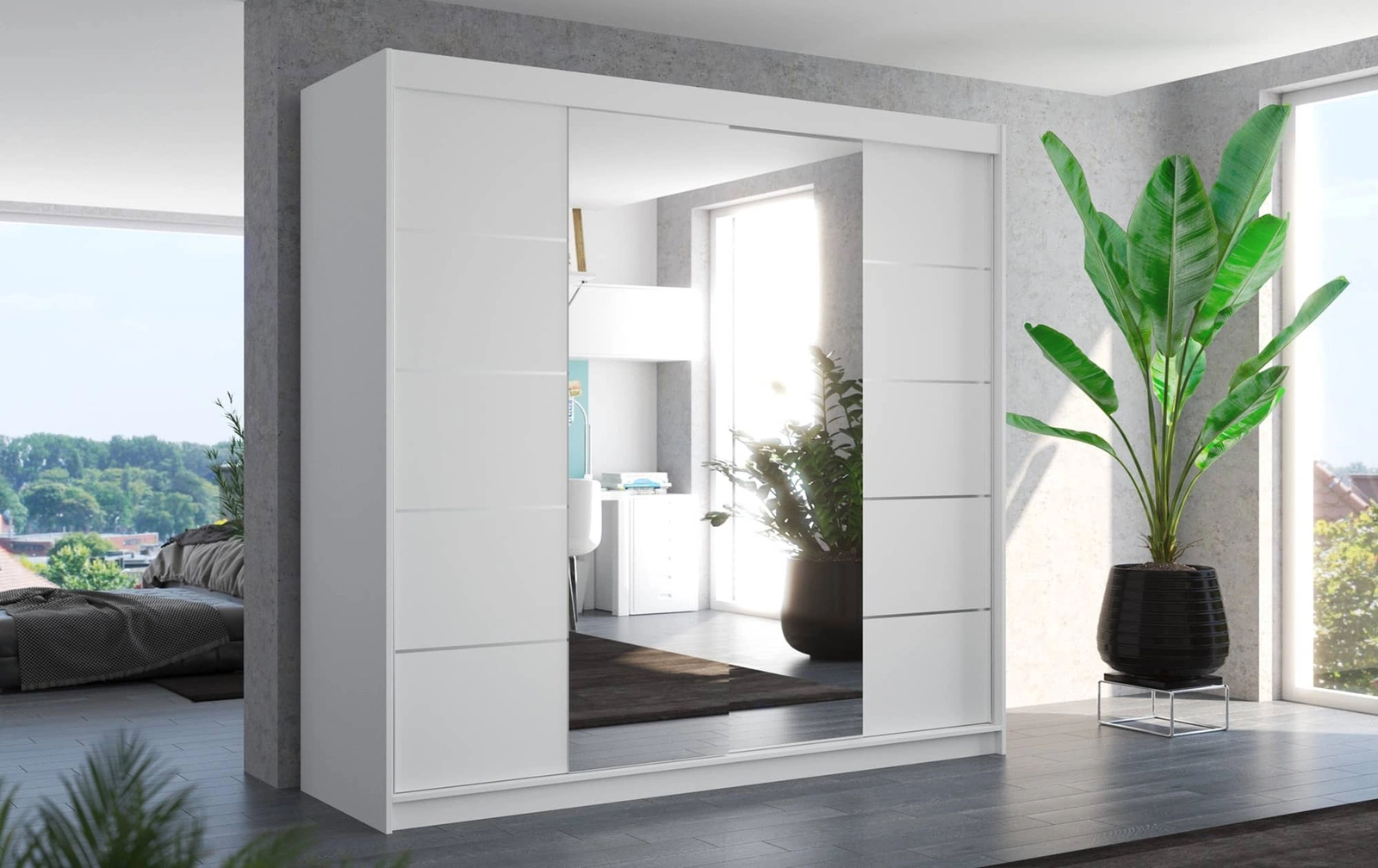 Szafa przesuwna z lustrem Dalmatia 200 cm w kolorze białym to niezbędny element wyposażenia, który odnajdzie się w wielu aranżacjach.