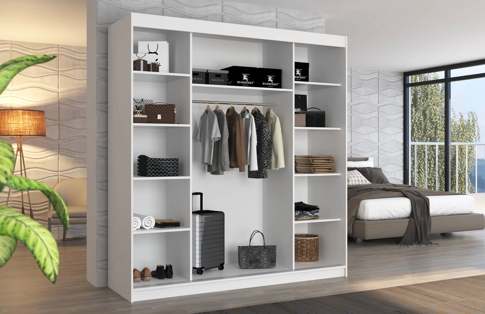 Szafa jest skonstruowana z 2 drzwi. Szafa gwarantuje komfortowe i bezproblemowe korzystanie oraz trwałość całego mebla przez wiele lat użytkowania. Prosty design sprawia, że szafa na ubrania z powodzeniem sprawdzi się jako szafa z lustrem do sypialni, jako szafa do przedpokoju lub szafa do pokoju dziecięcego. Szafa przesuwna Dalmatia będzie również świetnym wyborem do pokoju niemowlęcego. Doskonale sprawdzi się także w roli garderoby do przedpokoju.