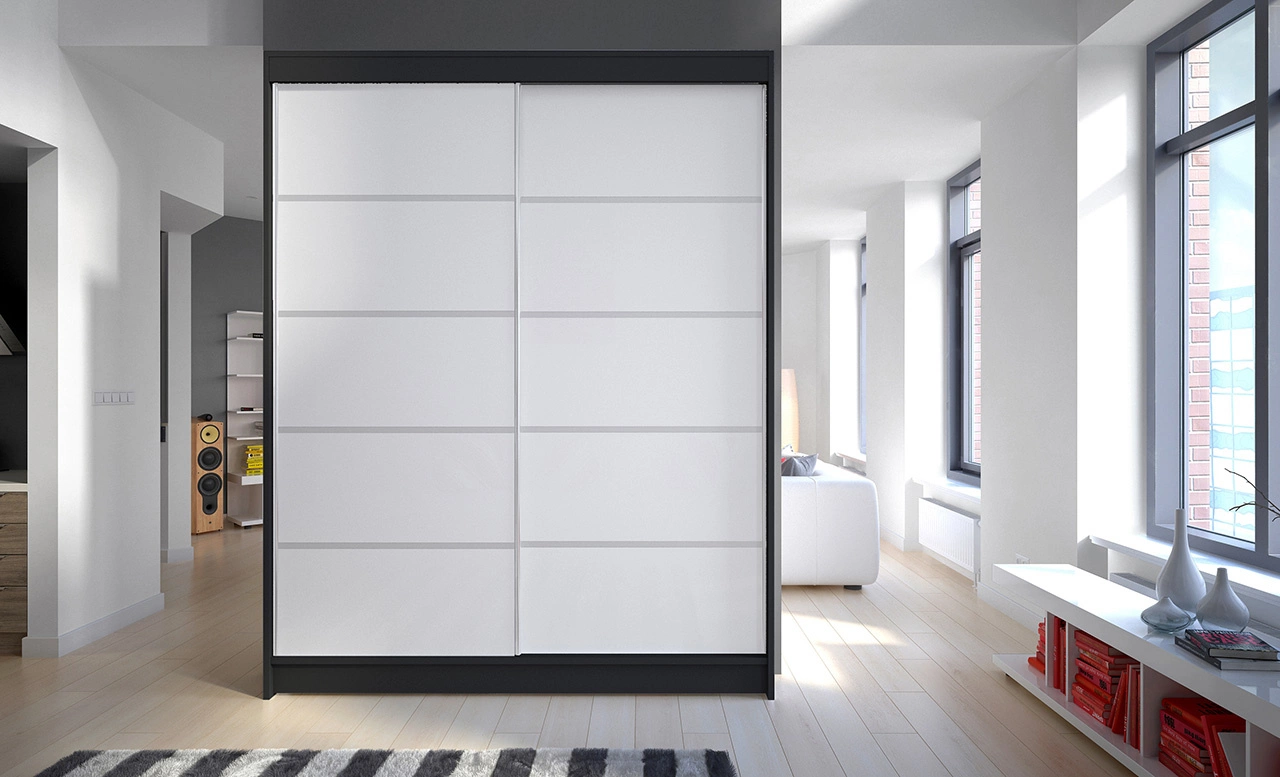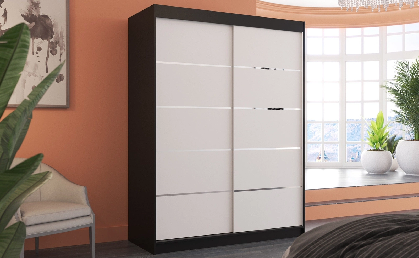 Szafa przesuwna Luft 150 cm w kolorze czarny / biały to niezwykle funkcjonalny mebel, który odnajdzie się w wielu aranżacjach.