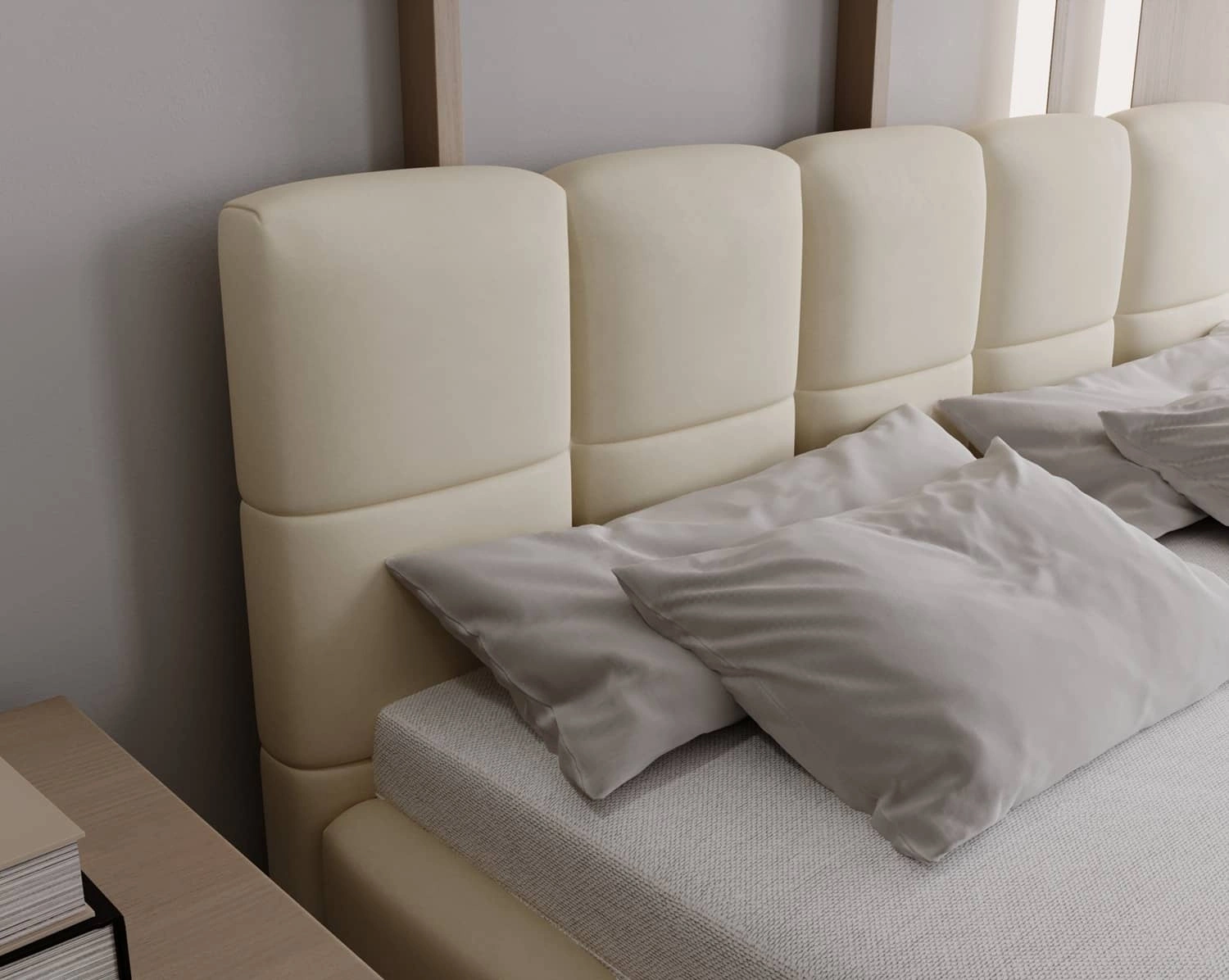 Łóżko tapicerowane Olne 180x200 beżowe stylowe łóżko z pojemnikiem na pościel wygodny zagłówek zachwyca eleganckim designem