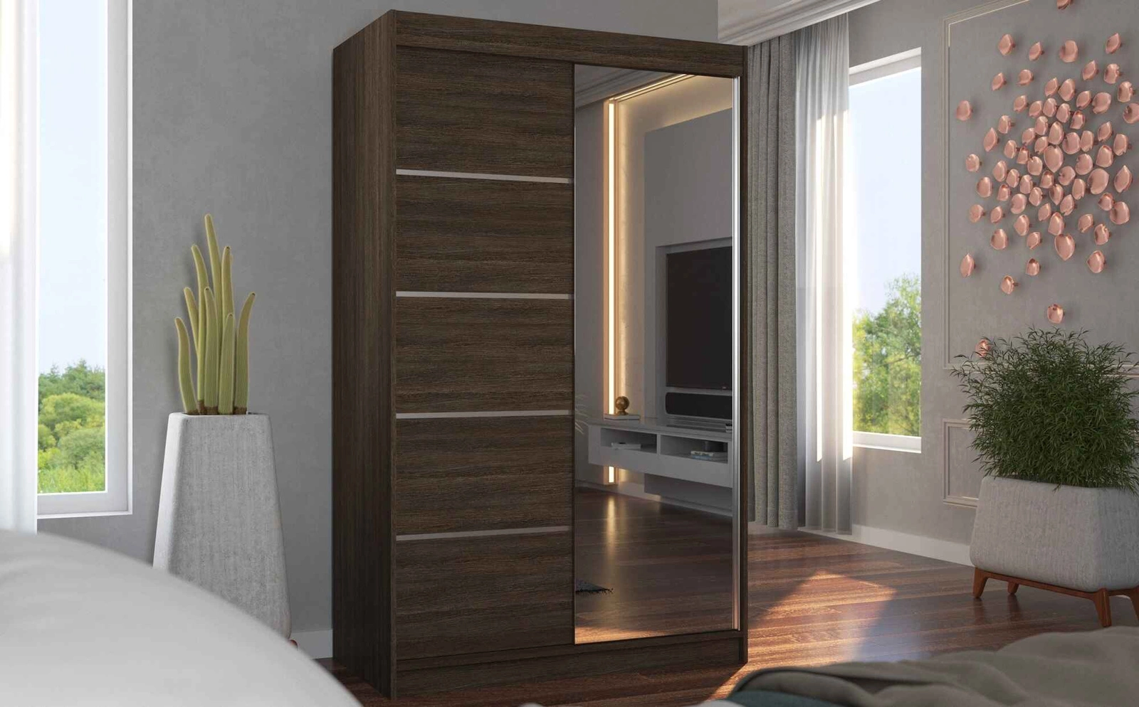 Szafa przesuwna z lustrem Nicea 120 cm w kolorze dąb sonoma czekolada to niezbędny element wyposażenia, który odnajdzie się w wielu aranżacjach.