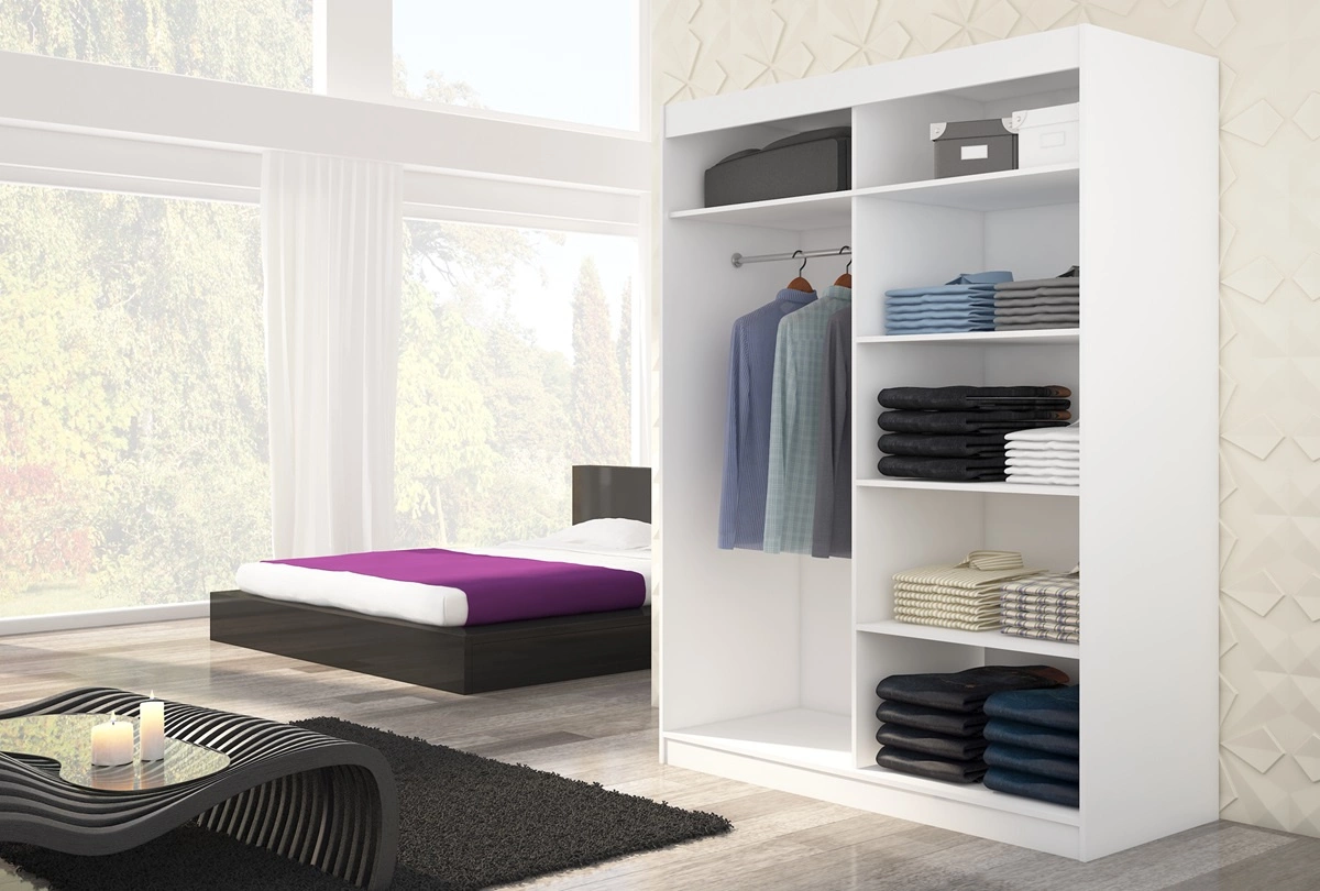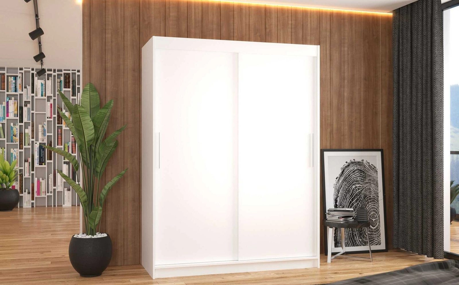 Szafa przesuwna Donna 150 cm biała funkcjonalna szafa o uniwersalnym designie doskonała propozycja do sypialni lub przedpokoju