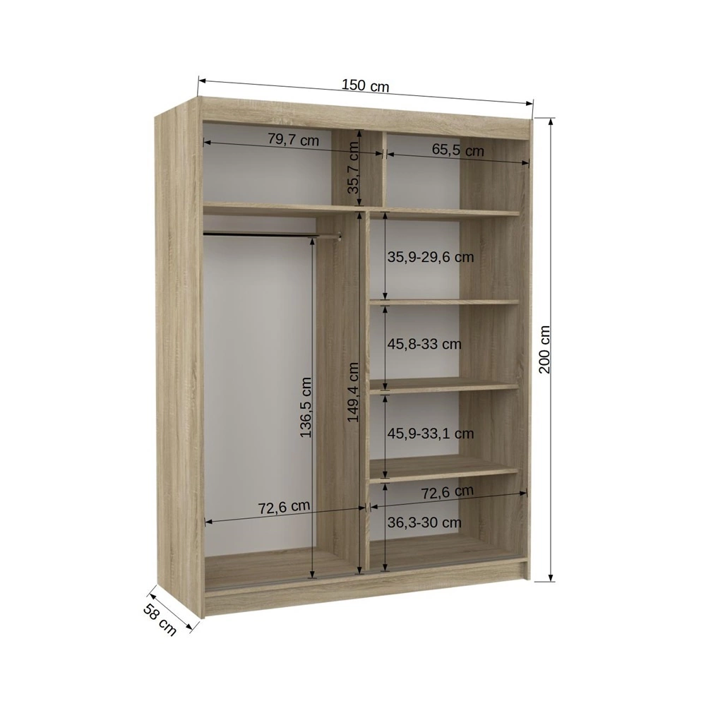 Szafa przesuwna Donna 150 cm dąb sonoma jasny funkcjonalna szafa o uniwersalnym designie doskonała propozycja do przedpokoju