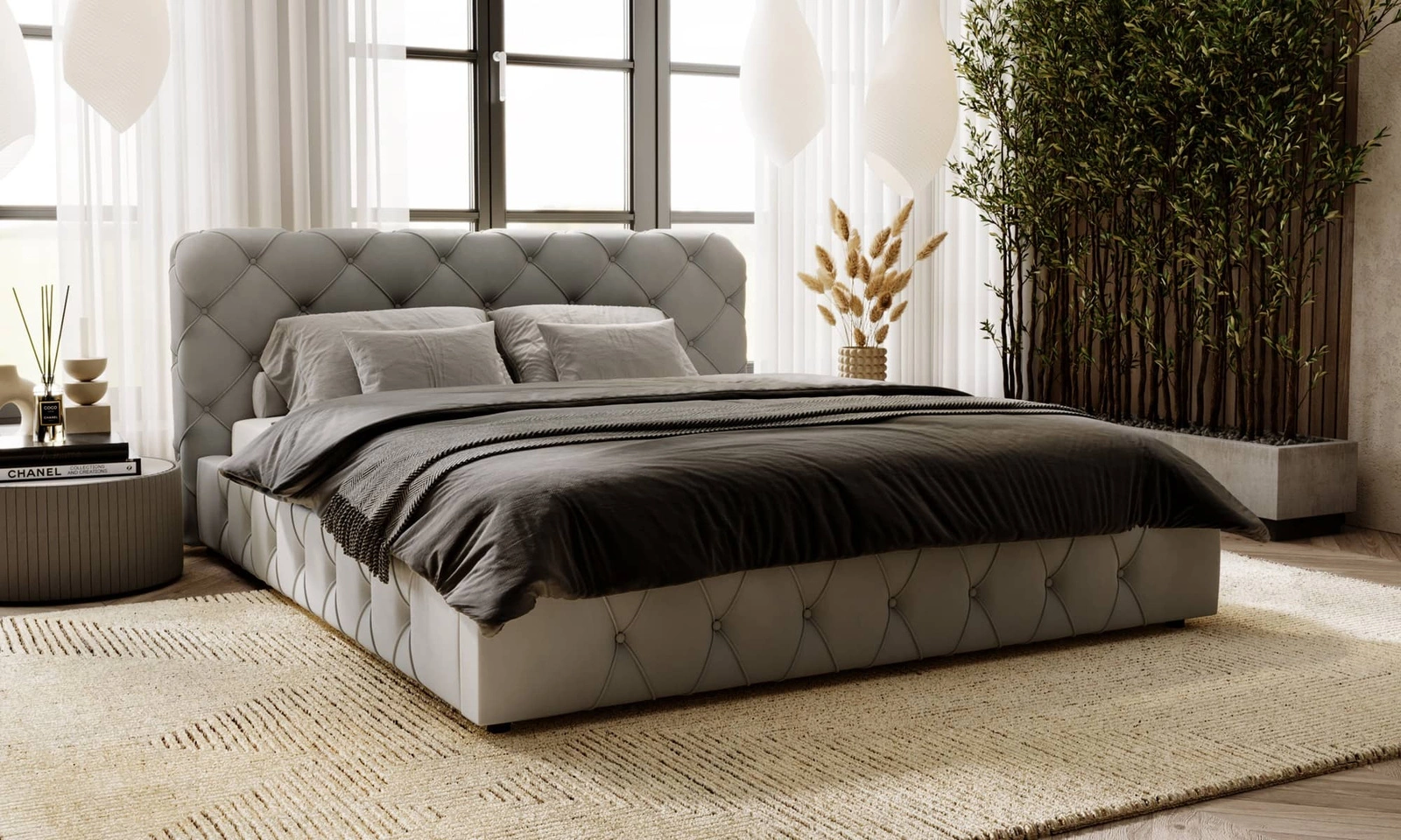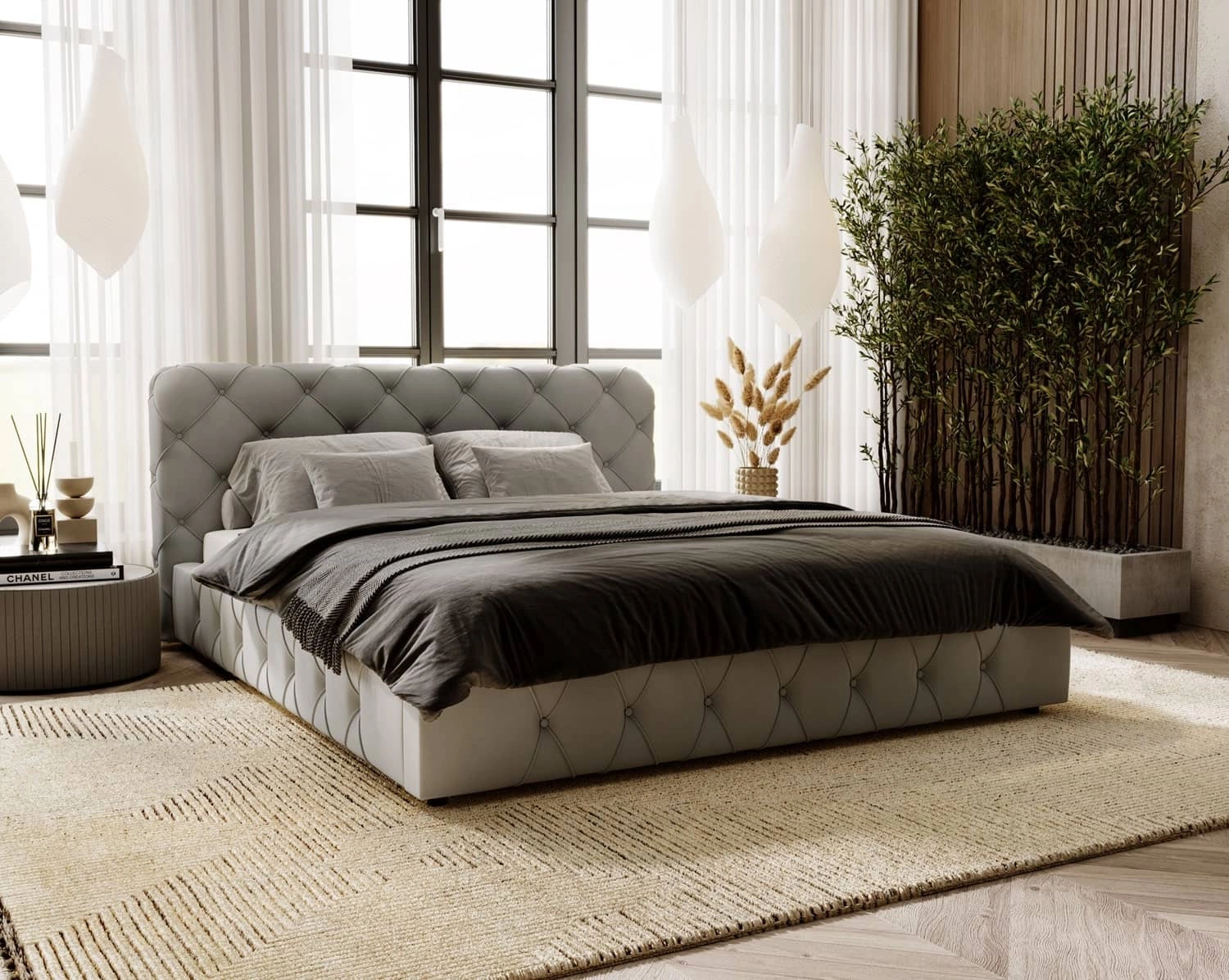 Łóżko wykonane z tkaniny typu velvet Amor Velvet 4318 gwarantuje najwyższy komfort i funkcjonalność podczas codziennego wypoczynku w sypialni. Tkanina posiada powłokę hydrofobową, co gwarantuje ograniczone wchłanianie cieczy. Tkanina wykazuje także wysoką odporność na płowienie co idealnie sprawdza się przy bardzo nasłonecznionych aranżacjach wnętrz. Niezwykle miękki, gładki materiał obiciowy Amor Velvet wyróżnia przyjemna i aksamitna w dotyku powierzchnia. Dzięki wszystkim właściwościom użytej tkaniny, łóżko na długo zachowa swój pierwotny wygląd. Konstrukcja łóżka zapewnia dużą stabilność i wygodę użytkowania. Rama łóżka jest wykonana z drewna oraz płyty meblowej. Pikowanie na wezgłowiu i ramie łóżka przyciągą wzrok i nadają łóżku szczególnego charakteru.