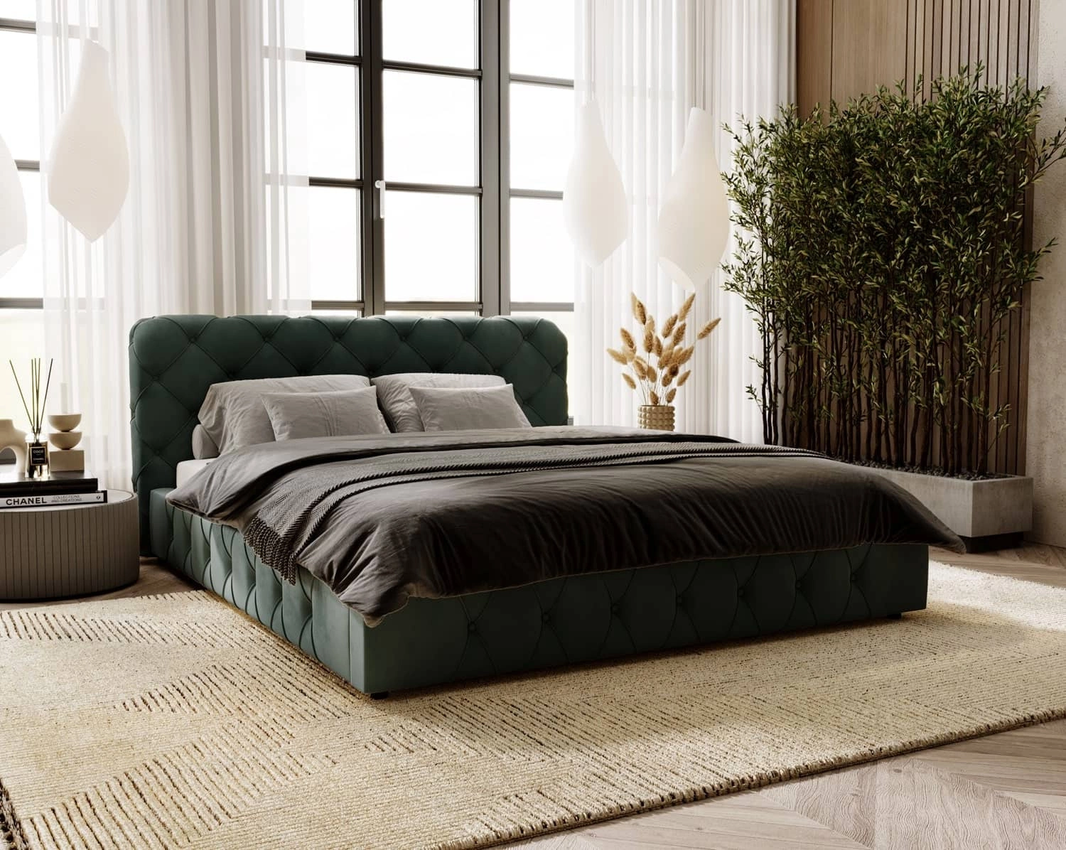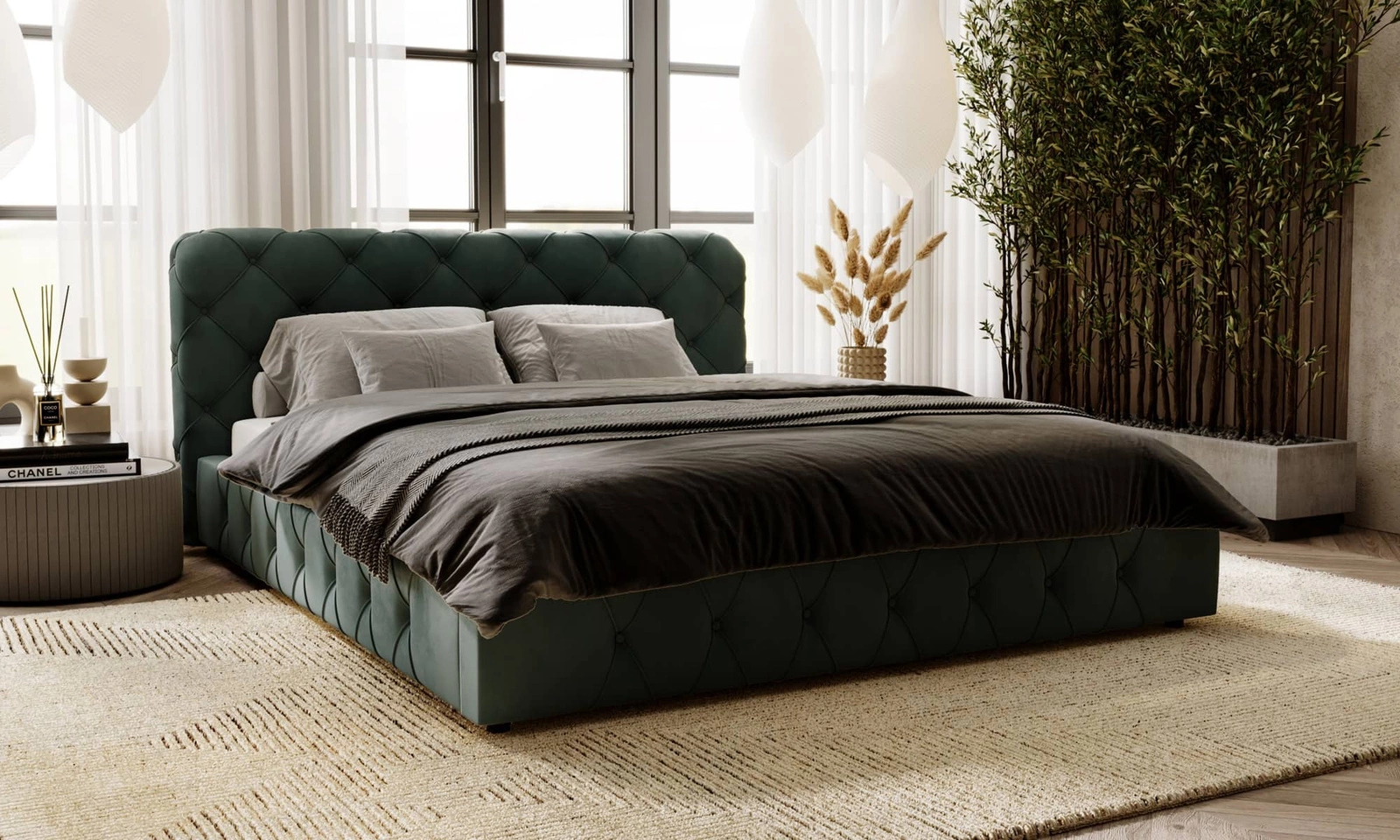 Łóżko wykonane z tkaniny typu velvet Amor Velvet 4332 gwarantuje najwyższy komfort i funkcjonalność podczas codziennego wypoczynku w sypialni. Tkanina posiada powłokę hydrofobową, co gwarantuje ograniczone wchłanianie cieczy. Tkanina wykazuje także wysoką odporność na płowienie co idealnie sprawdza się przy bardzo nasłonecznionych aranżacjach wnętrz. Niezwykle miękki, gładki materiał obiciowy Amor Velvet wyróżnia przyjemna i aksamitna w dotyku powierzchnia. Dzięki wszystkim właściwościom użytej tkaniny, łóżko na długo zachowa swój pierwotny wygląd. Konstrukcja łóżka zapewnia dużą stabilność i wygodę użytkowania. Rama łóżka jest wykonana z drewna oraz płyty meblowej. Pikowanie na wezgłowiu i ramie łóżka przyciągą wzrok i nadają łóżku szczególnego charakteru.