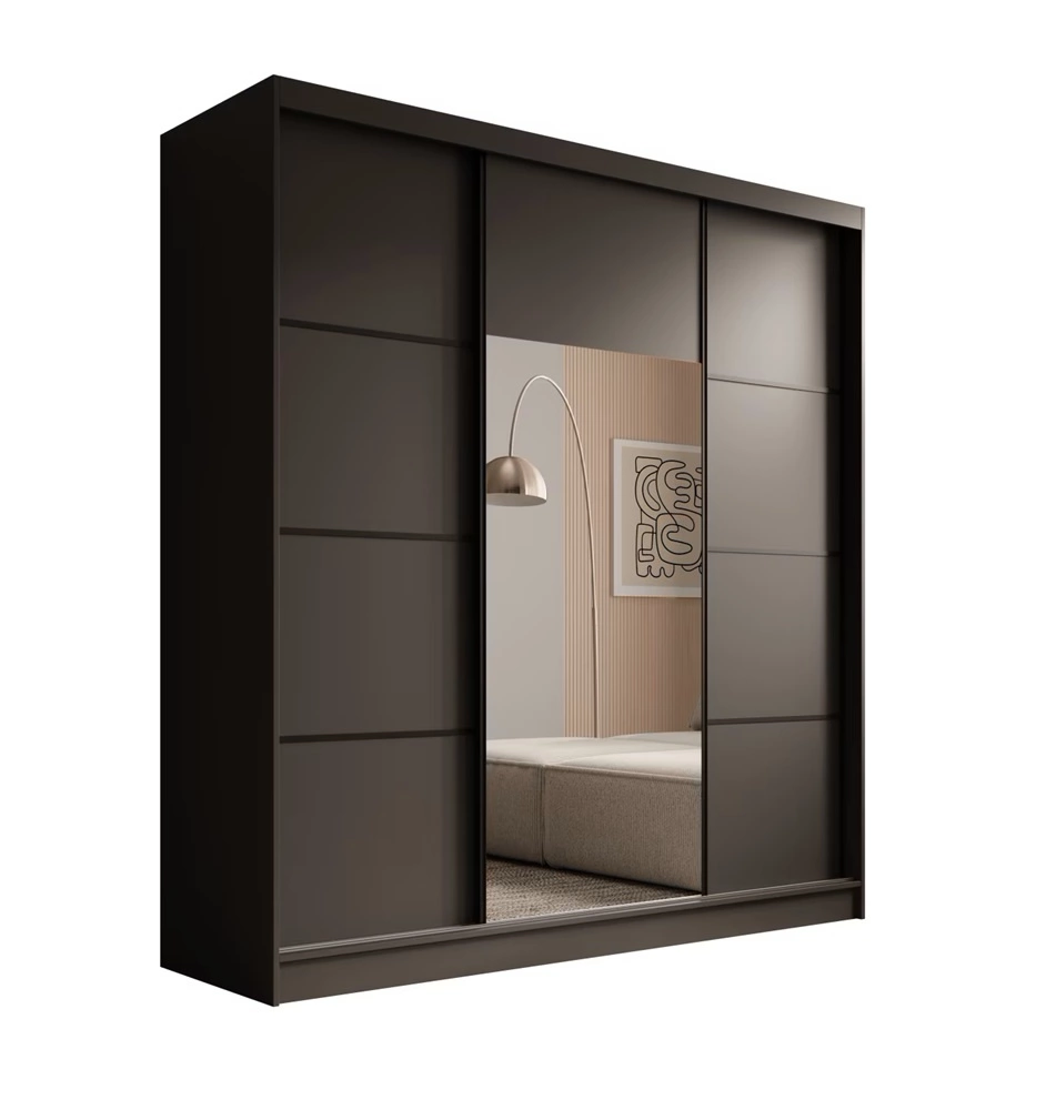 Szafa jest skonstruowana z 3 drzwi. Szafa gwarantuje komfortowe i bezproblemowe korzystanie oraz trwałość całego mebla przez wiele lat użytkowania. Prosty design sprawia, że szafa na ubrania z powodzeniem sprawdzi się jako szafa z lustrem do sypialni, jako szafa do przedpokoju lub szafa do pokoju dziecięcego. Szafa przesuwna Keri będzie również świetnym wyborem do pokoju niemowlęcego. Doskonale sprawdzi się także w roli garderoby do przedpokoju.