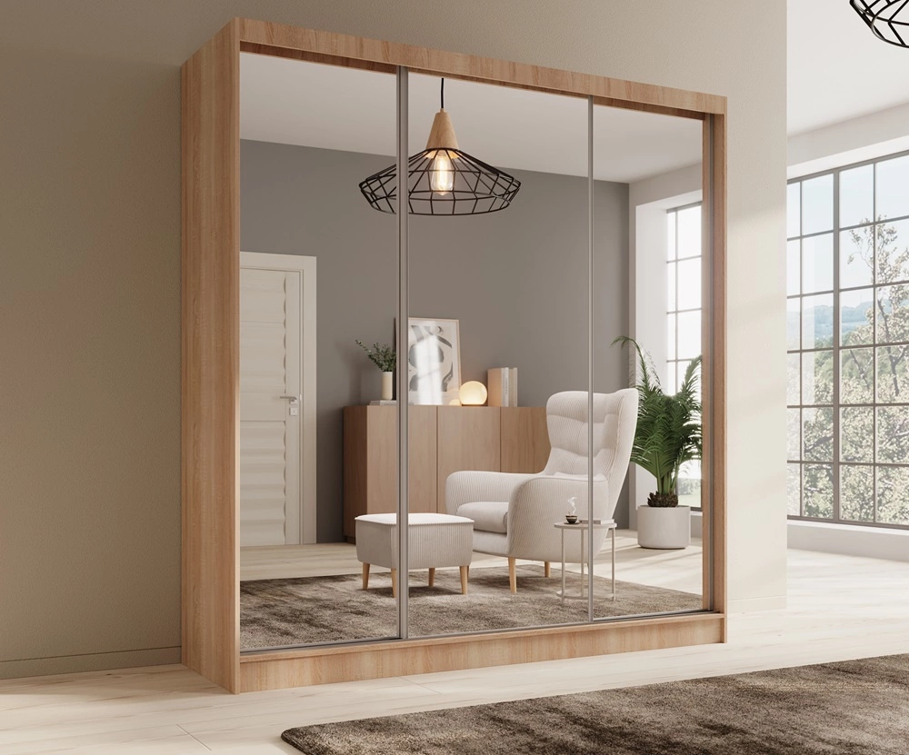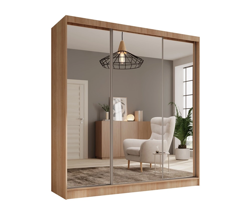 Szafa przesuwna z lustrem Tola 200 cm w kolorze dąb sonoma jasny to niezbędny element wyposażenia, który odnajdzie się w wielu aranżacjach.