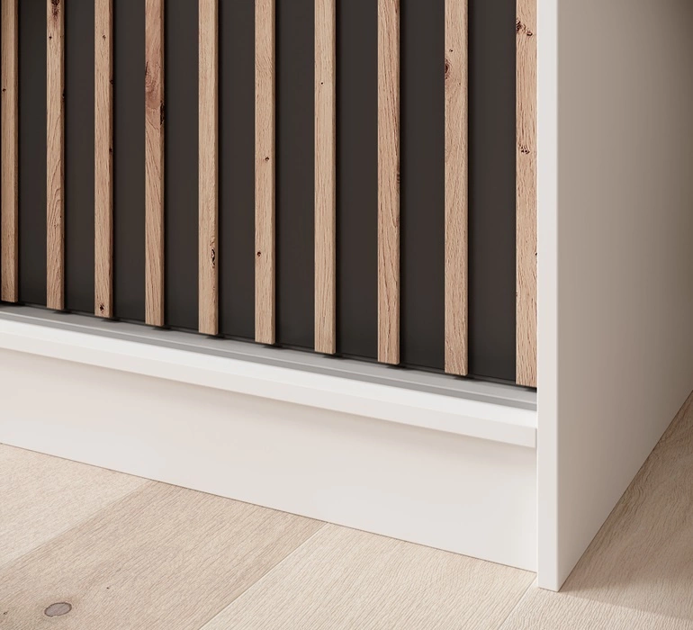 Szafa przesuwna z kolekcji Ida została zaprojektowana z myślą o praktycznym podejściu do organizacji przestrzeni. Przemyślany układ wnętrza szafy pozwoli na harmonijne uprządkowanie każdej garderoby oraz niezbędnych akcesoriów, zachowując przy tym estetykę i elegancję. Modna kolorystyka, a także staranne wykończenie szafy zapewni niebanalny akcent stylistyczny w każdym wnętrzu. Dodatkowym atutem mebla są stylowe lamele, które zdobią front szafy, dodając jej eleganckiego charakteru i nowoczesności. Obecność szafy stanie się stylowym wykończeniem sypialni lub garderoby oraz nada niepowtarzalnego klimatu. Szafa na ubrania Ida z powodzeniem odnajdzie się we wnętrzach w stylu klasycznym jak i nowoczesnym.