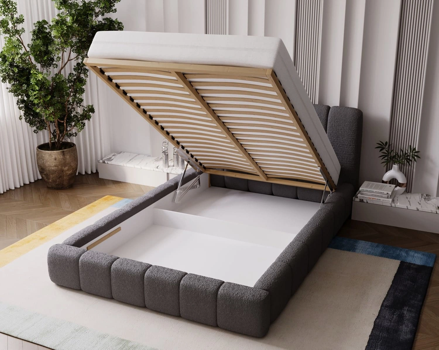 Łóżko tapicerowane Malmi 160x200 grafitowe stylowe łóżko z pojemnikiem na pościel wygodny zagłówek zachwyca eleganckim designem