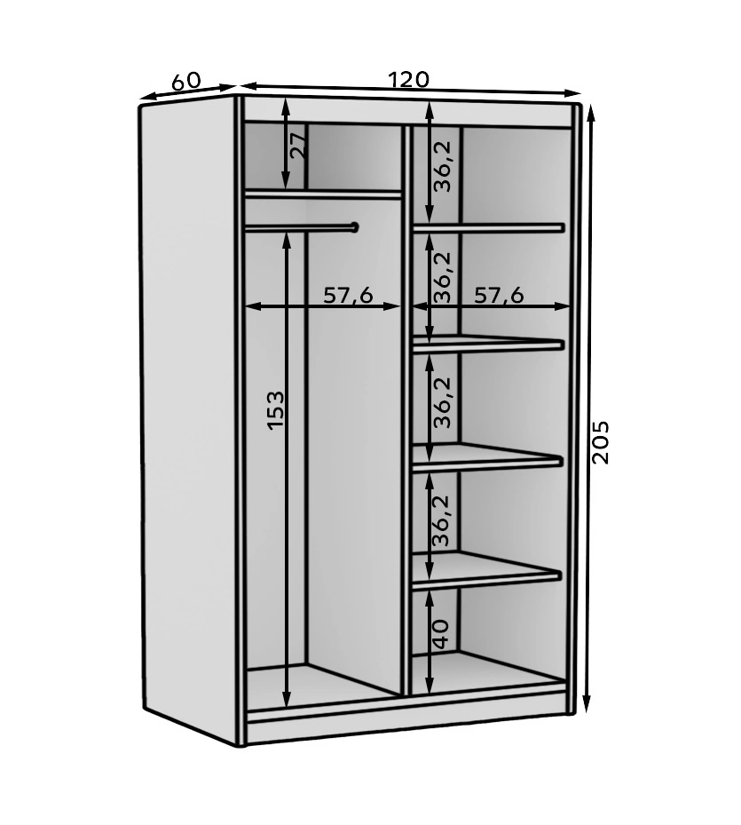 Szafa Hailey dzieli się na część z drążkiem na ubrania wiszące i część z półkamiSzafy do sypialni z kolekcji Hailey wykonane są z wysokiej jakości płyty laminowanej o grubości 16mm, która charakteryzuje się odpornością na wpływ czynników zewnętrznych takich jak obicia, uderzenia i niefortunne zadrapania. Stylowym wykończeniem drzwi szafy są czarne uchwyty, które poza swoją podstawową funkcją, nadają niezwykle gustownego wyglądu.