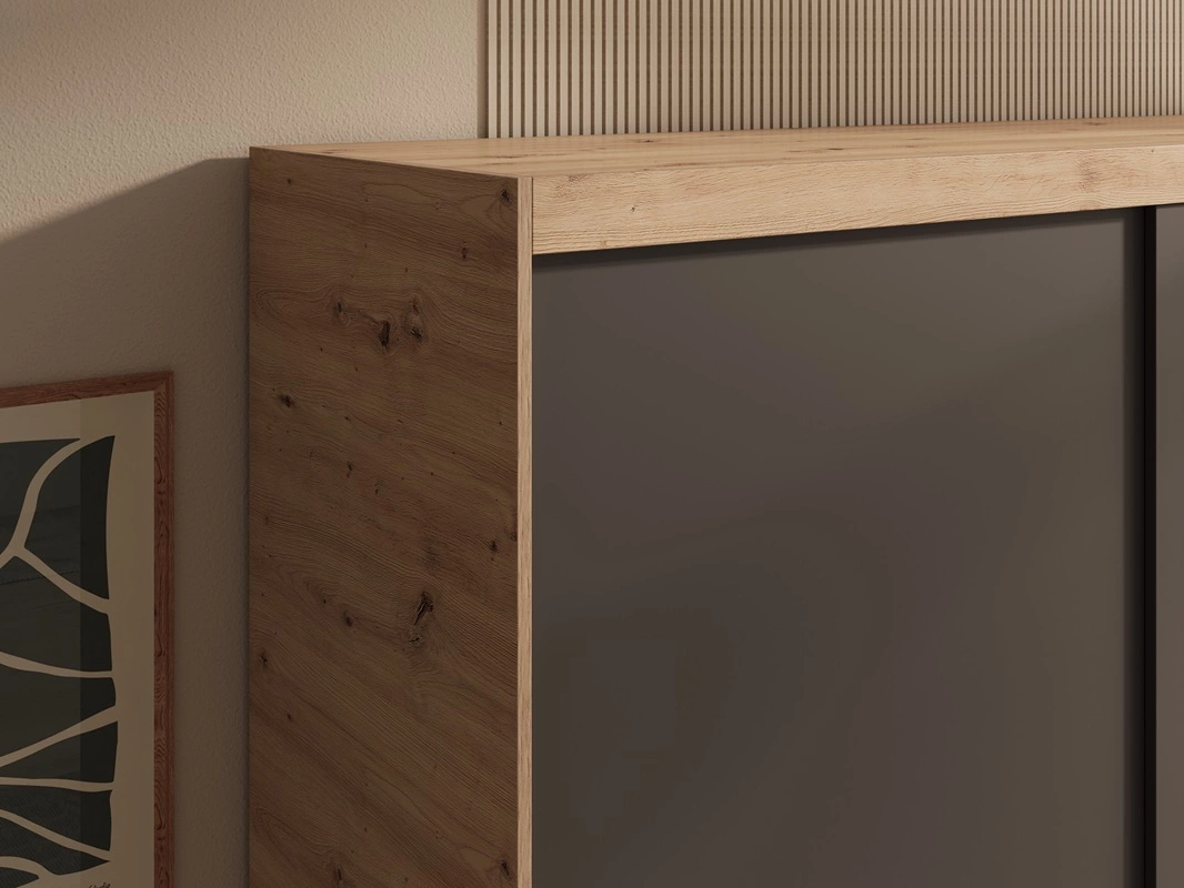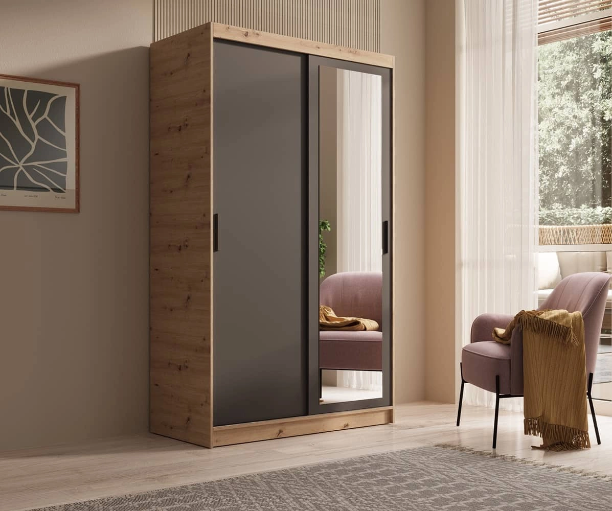 Szafa przesuwna z lustrem Hailey 120 cm dąb artisan / czarny minimalistyczna forma szafa idealnie wpasuje się do każdego wnętrza