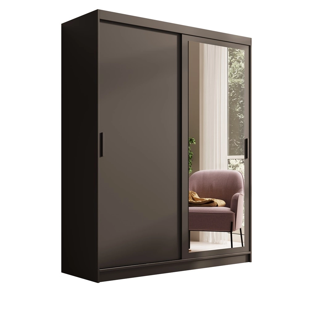 Szafa przesuwna z lustrem Hailey 160 cm czarna prosta forma i minimalistyczny wygląd szafa idealnie wpasuje się do każdego wnętrza