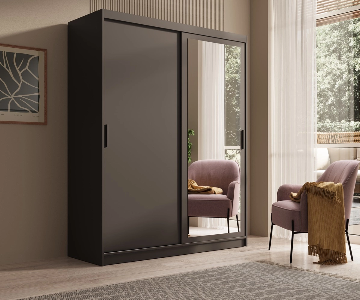 Szafa przesuwna z lustrem Hailey 160 cm w kolorze czarnym to niezbędny element wyposażenia, który odnajdzie się w wielu aranżacjach.