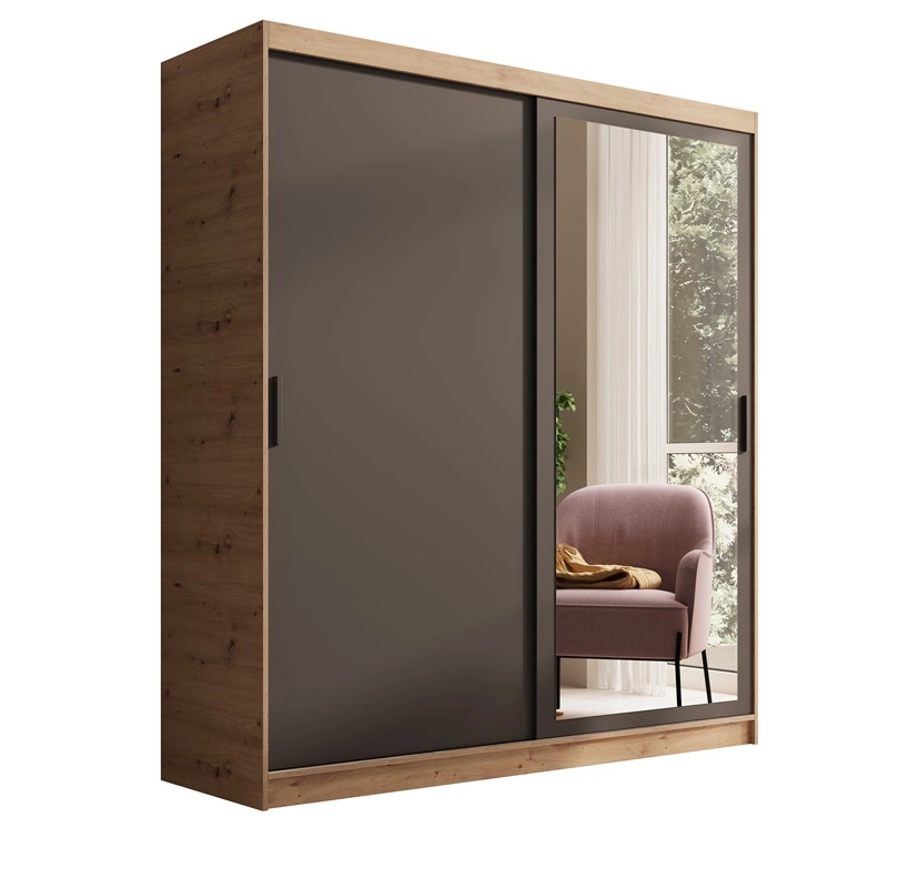 Szafa przesuwna z lustrem Hailey 180 cm dąb artisan / czarny minimalistyczna forma szafa idealnie wpasuje się do każdego wnętrza