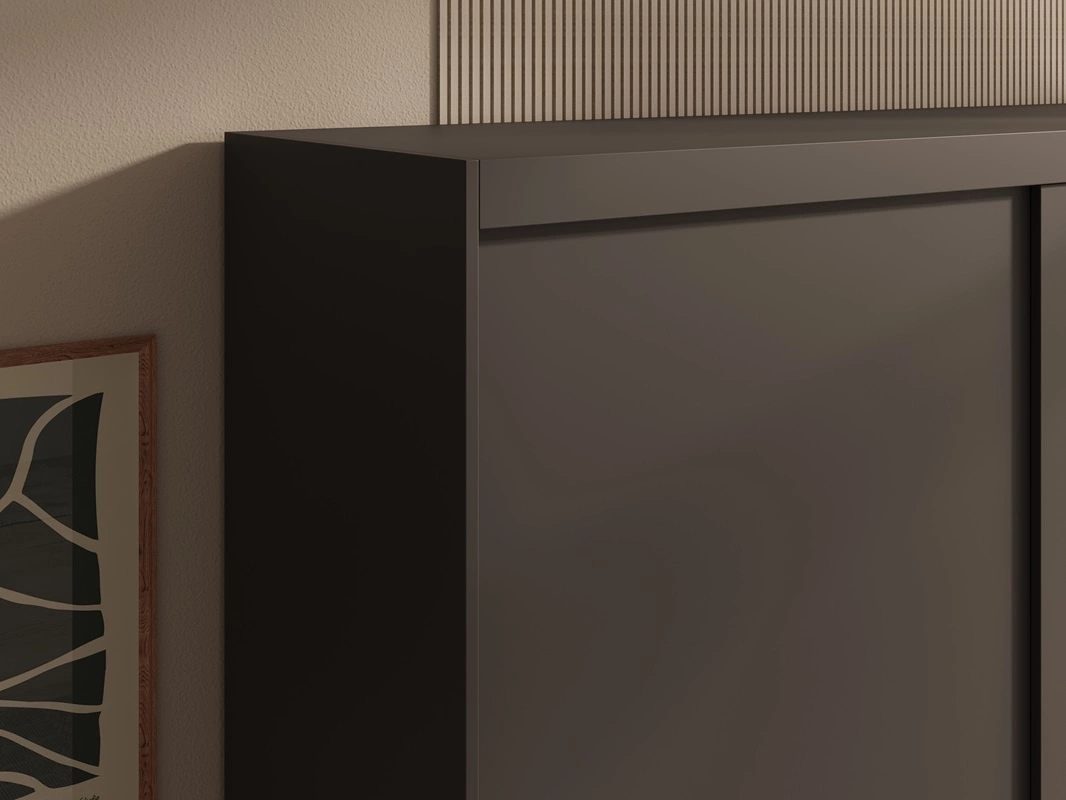 Szafa przesuwna z lustrem Hailey 180 cm czarna prosta forma i minimalistyczny wygląd szafa idealnie wpasuje się do każdego wnętrza