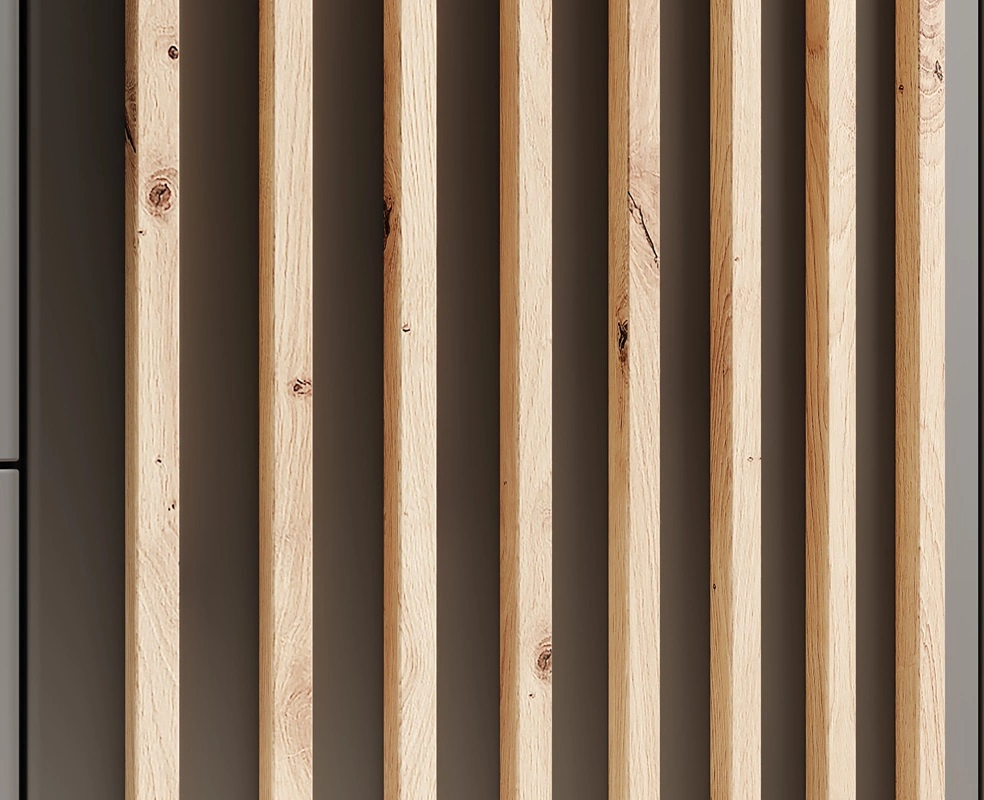 Szafa z kolekcji Neri została zaprojektowana z myślą o praktycznym podejściu do organizacji przestrzeni. Przemyślany układ wnętrza szafy pozwoli na harmonijne uprządkowanie każdej garderoby oraz niezbędnych akcesoriów, zachowując przy tym estetykę i elegancję. Modna kolorystyka, a także staranne wykończenie szafy zapewni niebanalny akcent stylistyczny w każdym wnętrzu. Dodatkowym atutem mebla są stylowe lamele, które zdobią front szafy, dodając jej eleganckiego charakteru i nowoczesności. Obecność szafy stanie się stylowym wykończeniem sypialni lub garderoby oraz nada niepowtarzalnego klimatu. Szafa na ubrania Neri z powodzeniem odnajdzie się we wnętrzach w stylu klasycznym jak i nowoczesnym.