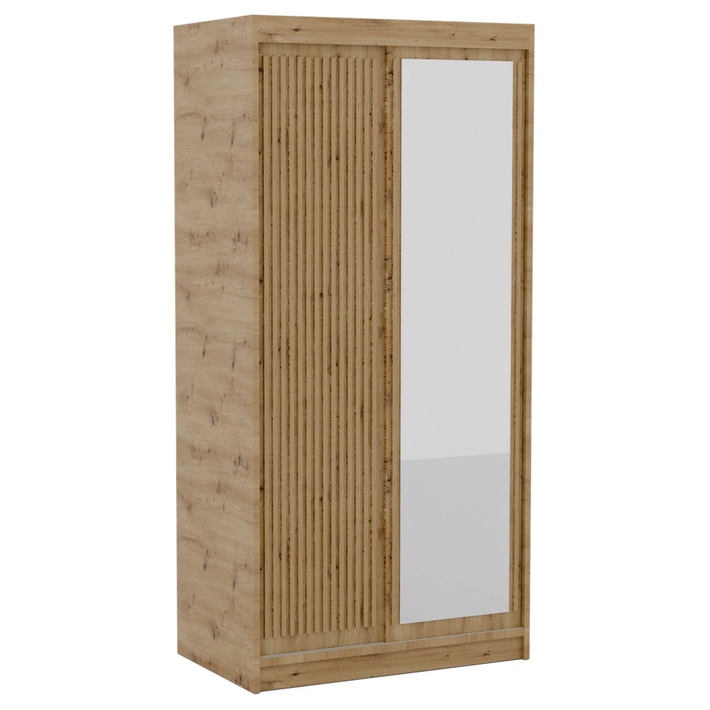 Szafa przesuwna z lustrem Delia 100 cm dąb artisan stylowa szafa z ozdobnymi lamelami w kolorze drewna wpasuje się do każdej aranżacji