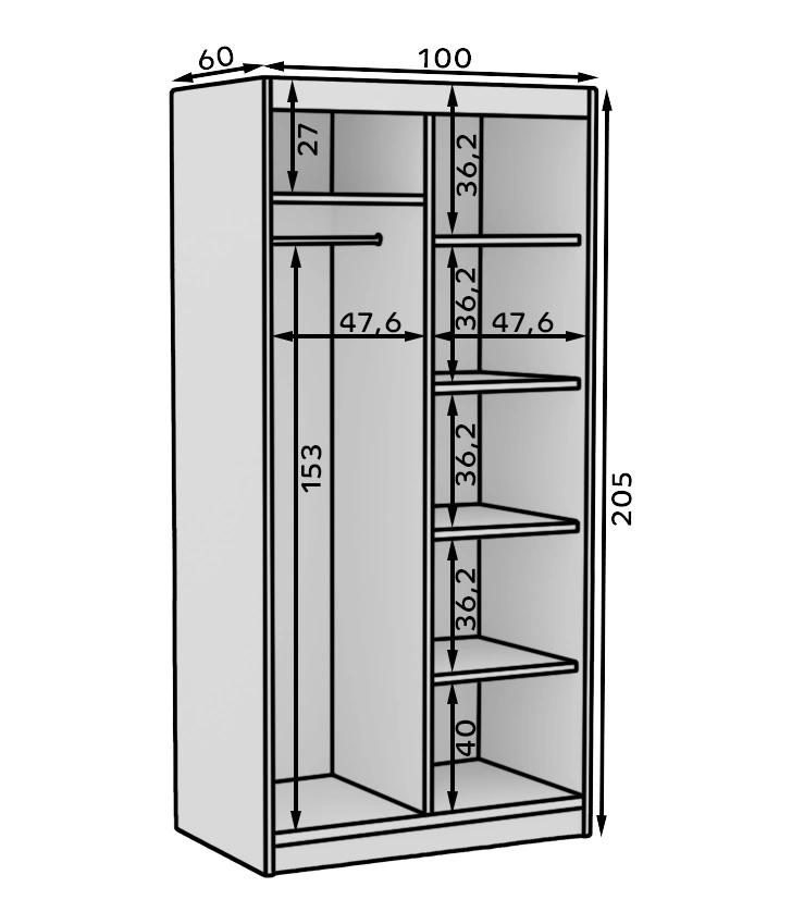 Szafa z lustrem jest skonstruowana z 2 drzwi. Szafa gwarantuje komfortowe i bezproblemowe korzystanie oraz trwałość całego mebla przez wiele lat użytkowania. Nowoczesny design sprawia, że szafa na ubrania z powodzeniem sprawdzi się jako szafa z lustrem do sypialni, jako szafa do przedpokoju lub szafa do pokoju dziecięcego. Szafa przesuwna Delia będzie również świetnym wyborem do pokoju niemowlęcego. Doskonale sprawdzi się także w roli garderoby do przedpokoju.