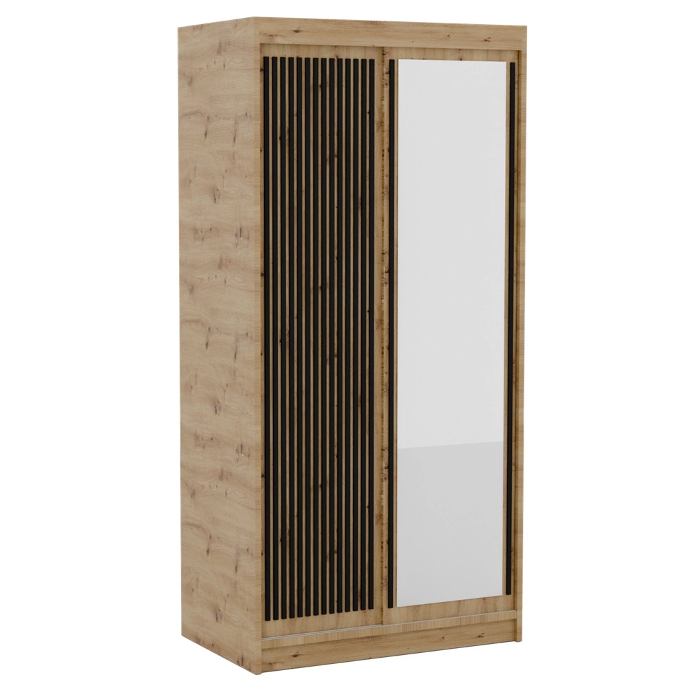 Szafa przesuwna z lustrem Delia 100 cm dąb artisan / czarny stylowa szafa z lamelami w kolorze drewna wpasuje się do każdej aranżacji