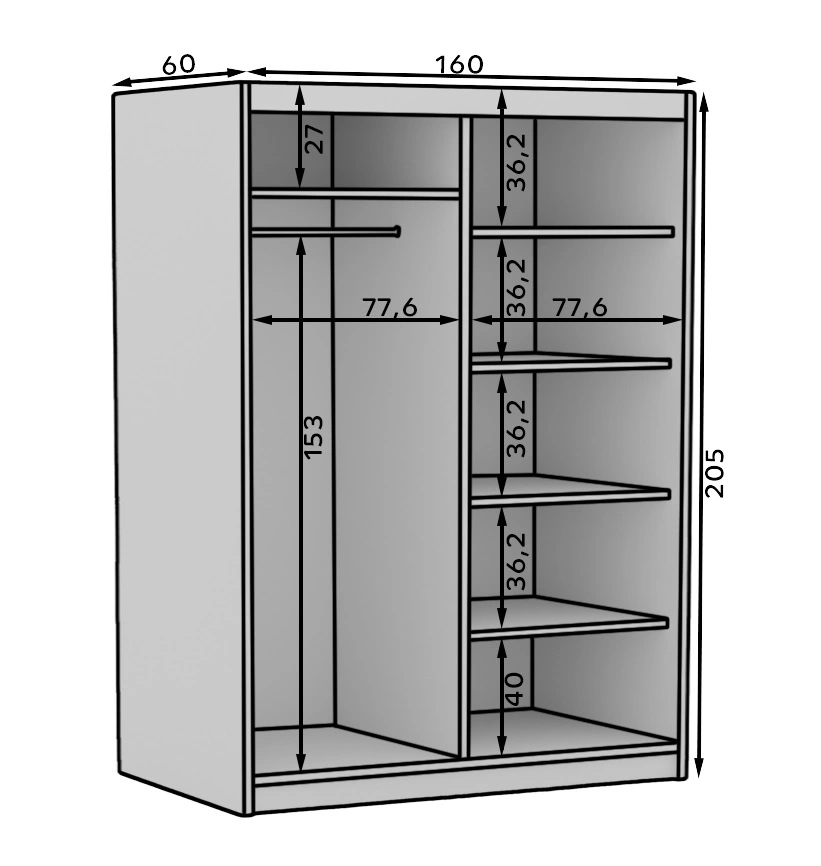 Szafa z lustrem jest skonstruowana z 2 drzwi. Szafa gwarantuje komfortowe i bezproblemowe korzystanie oraz trwałość całego mebla przez wiele lat użytkowania. Nowoczesny design sprawia, że szafa na ubrania z powodzeniem sprawdzi się jako szafa z lustrem do sypialni, jako szafa do przedpokoju lub szafa do pokoju dziecięcego. Szafa przesuwna Delia będzie również świetnym wyborem do pokoju niemowlęcego. Doskonale sprawdzi się także w roli garderoby do przedpokoju.