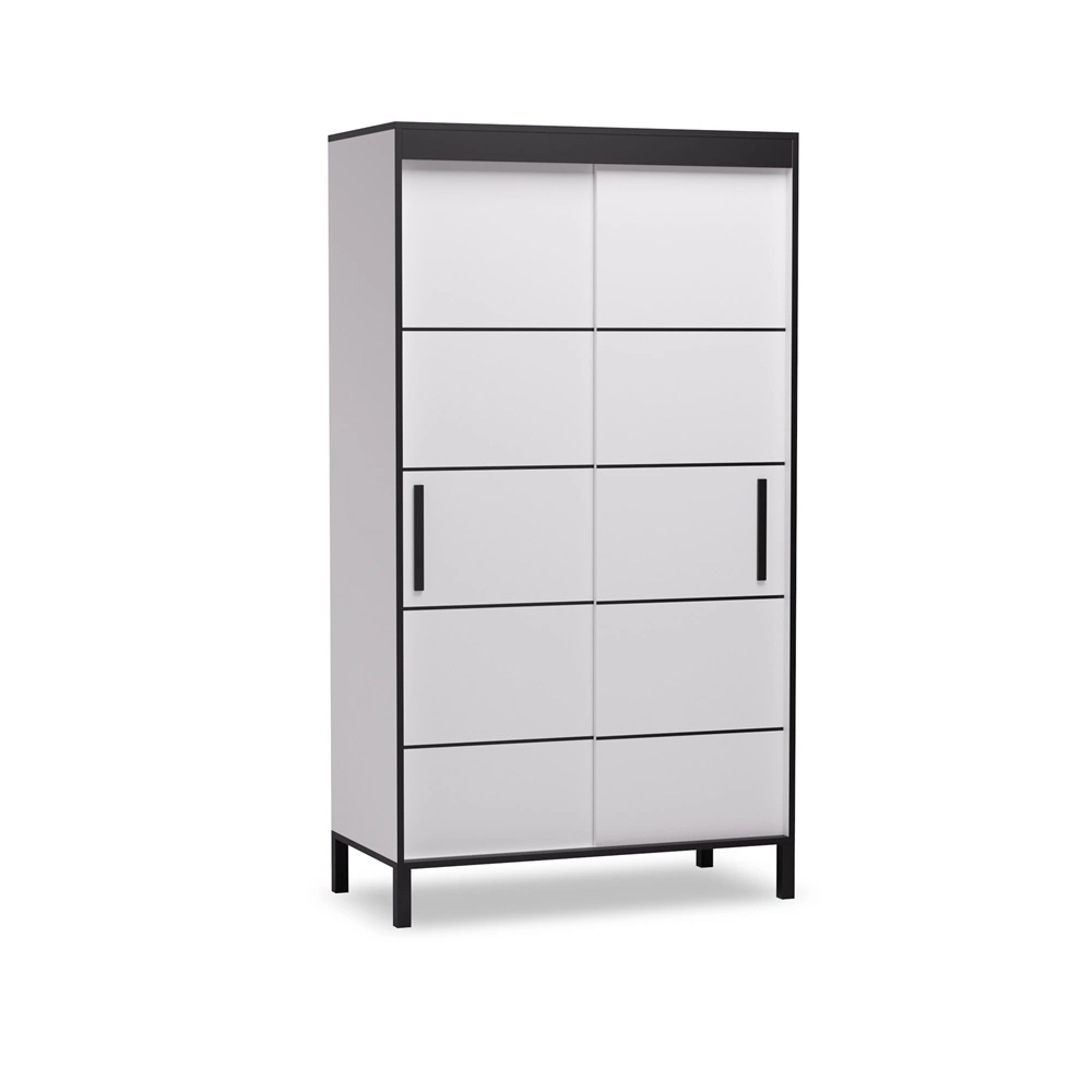 Szafa przesuwna Bell 120 cm biały / czarny stylowa szafa do przedpokoju lub biura w stylu loftowym wysoka podstawa