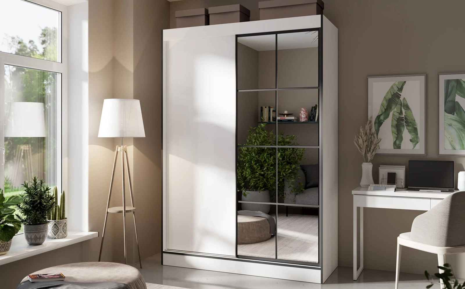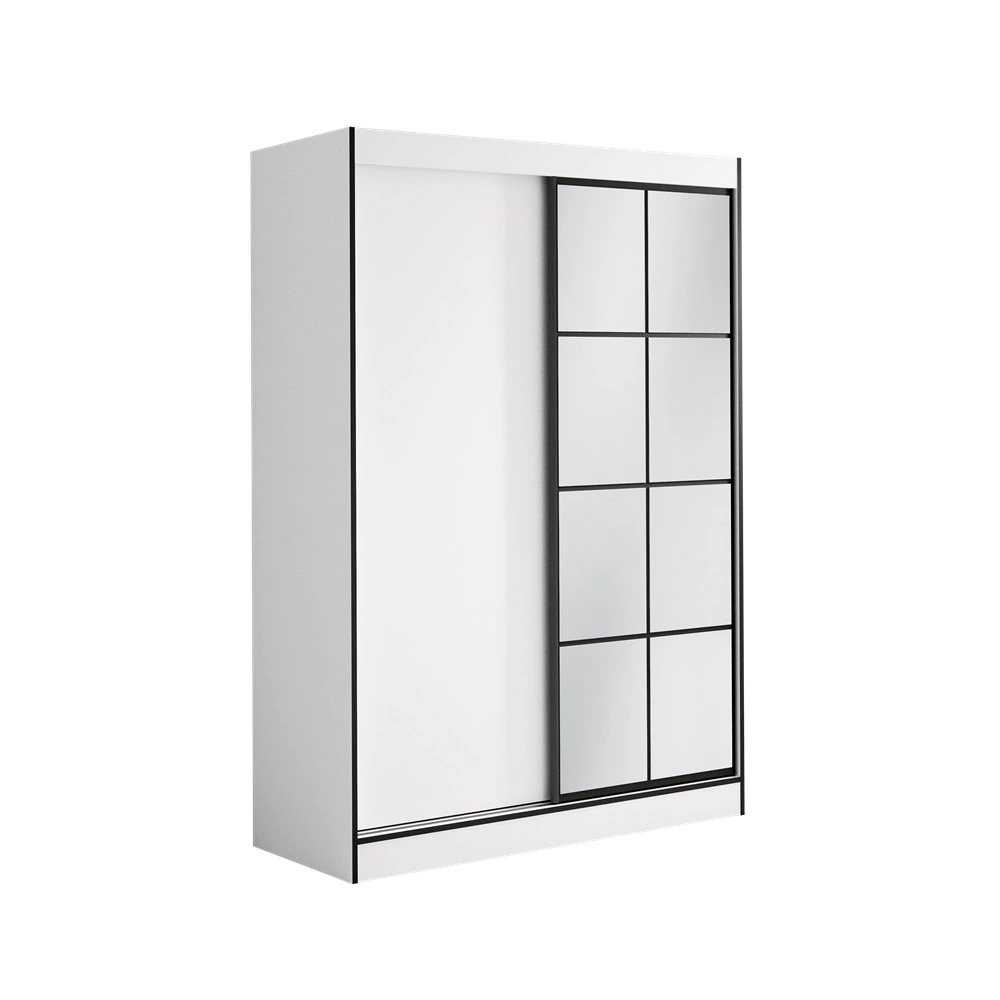 Szafa przesuwna z lustrem Osgar 150 cm w kolorze biały / czarny to odważna propozycja do wnętrz o nowoczesnym charakterze.