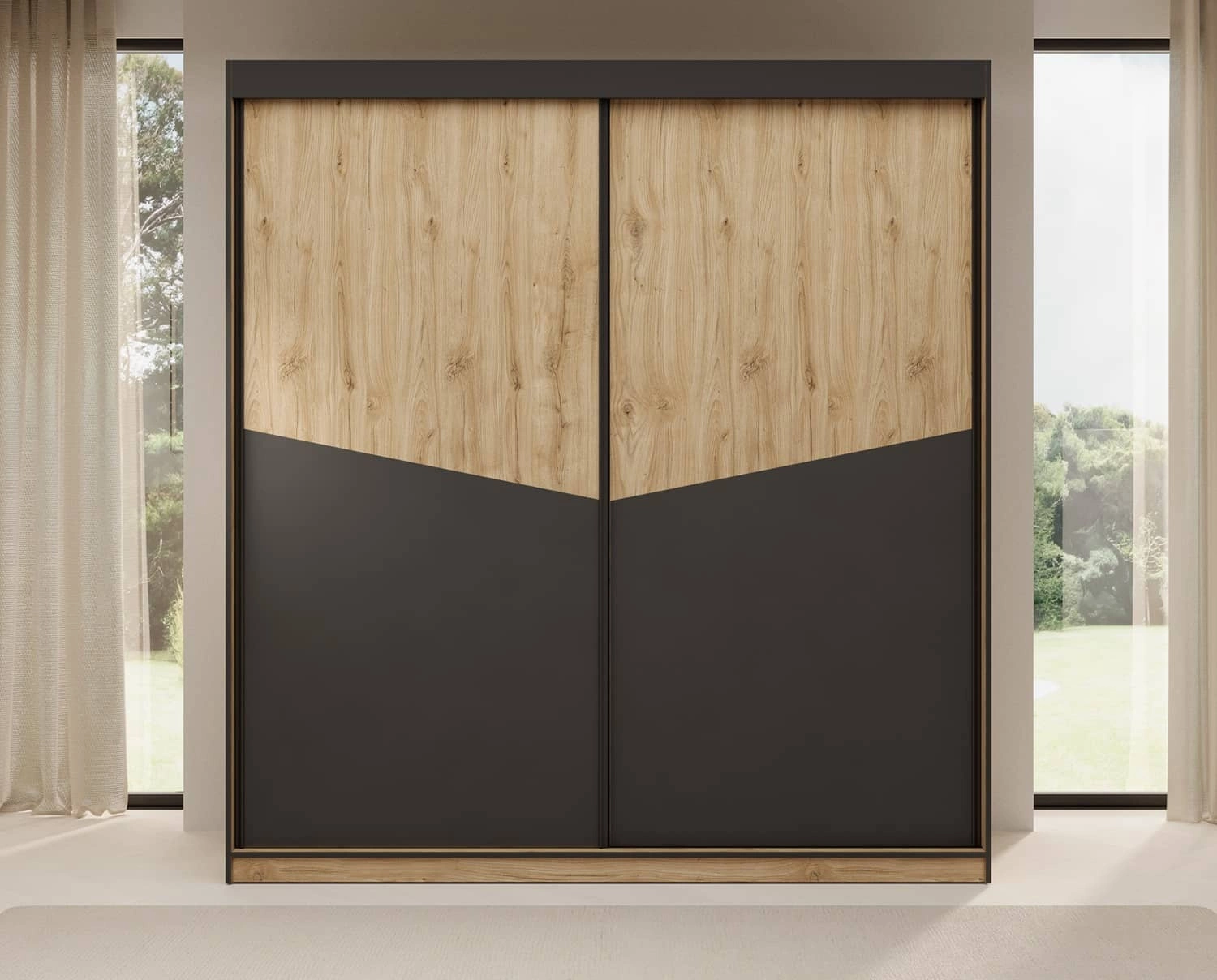 Szafa przesuwna 200 cm Atson w kolorze dąb odwieczny / czarny to oryginalny mebel doskonale wpisujący się w nowoczesne aranżacje.
