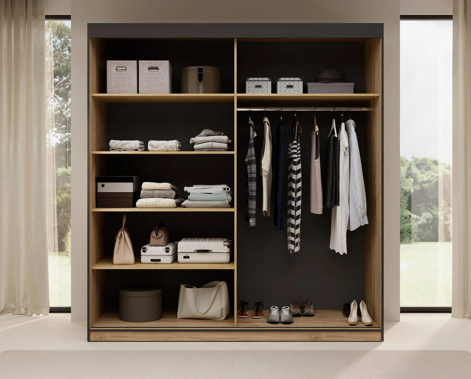 Szafa przesuwna Atson 200 cm dąb odwieczny / czarny pojemna i modna szafa do przedpokoju łączy elegancję z funkcjonalnością