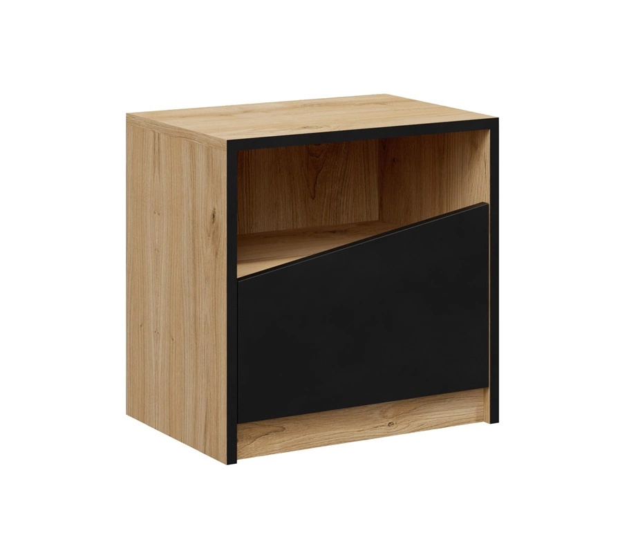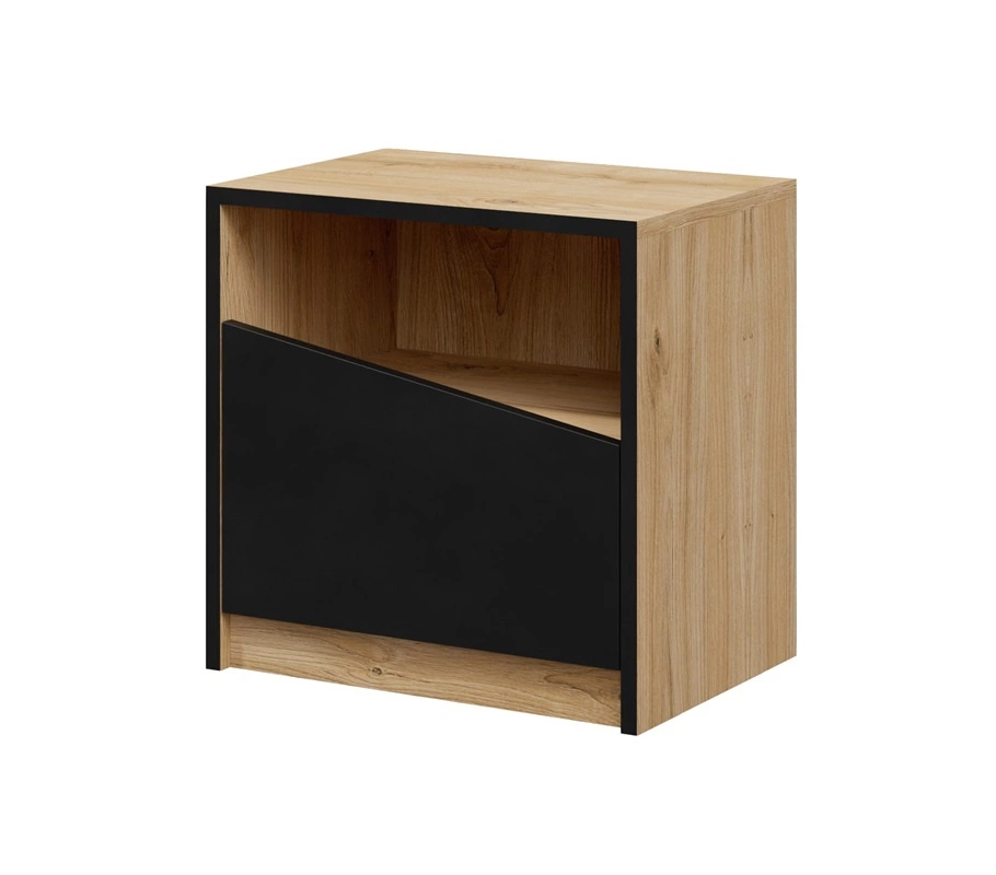 Zestaw mebli do sypialni Atson to doskonałe połączenie naturalnego uroku drewna z minimalizmem w postaci czarnych akcentów. Oryginalny kształt drzwi, a także brak klasycznych uchwytów sprawiają, że meble idealnie komponują się z wnętrzami o surowym, minimalistycznym charakterze. Bryły z kolekcji Atson oferują pojemne szuflady i szafki, które pozwalają na wygodne przechowywanie różnych przedmiotów i najpotrzebniejszych akcesoriów. Dzięki szerokiej, stabilnej konstrukcji każda z brył może pełnić funkcję zarówno klasycznego mebla do salonu, jak i praktycznego elementu wyposażenia sypialni, gabinetu czy jadalni.