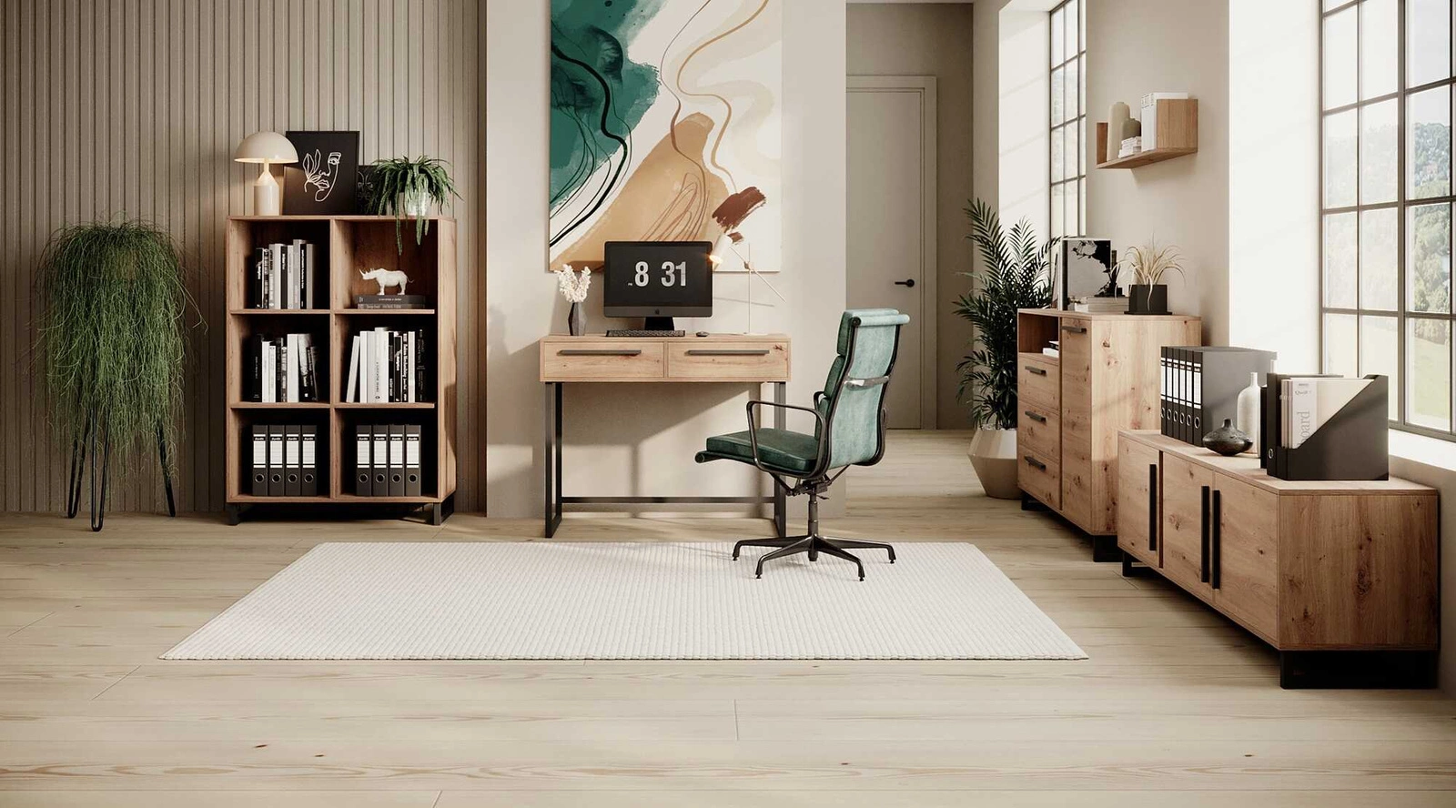 Biurko 100 cm Ariana w kolorze dąb artisan to mebel o prostym i eleganckim designie, który idealnie wpisuje się w obecne trendy wnętrzarskie.