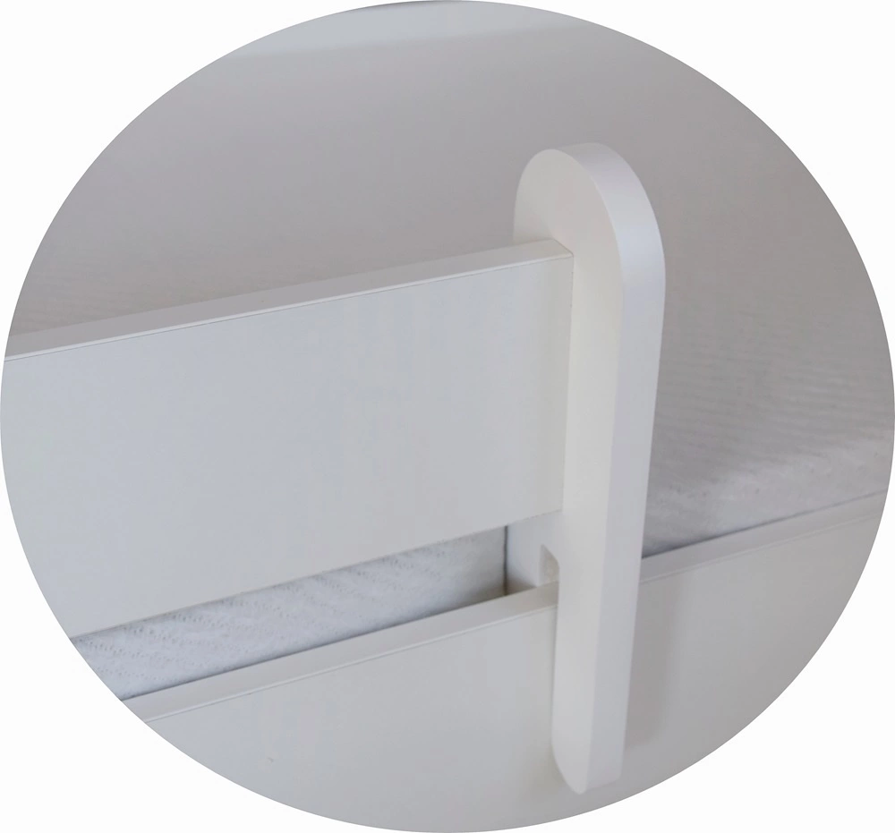 Łóżko Emily to doskonałe rozwiązanie do pokoju dziecięcego, które łączy nowoczesny design z funkcjonalnością, idealnie dopasowując się do potrzeb najmłodszych. Uniwersalna biel harmonijnie łączy się z delikatnymi, stylowymi akcentami sprawiając, że łóżko jednoosobowe z materacem doskonale wpisuje się w każdą aranżację pokoju dziecięcego, a także pokoju niemowlęcego dodając mu ciepła i harmonii. Dzięki urokliwej konstrukcji, łóżko z pewnością przypadnie do gustu każdemu dziecku oraz stanie się ważnym akcentem aranżacji wnętrza. Elementem przyciągającym wzrok są szare uchwyty w kształcie serca, które stanowią urokliwe wykończenie mebla.