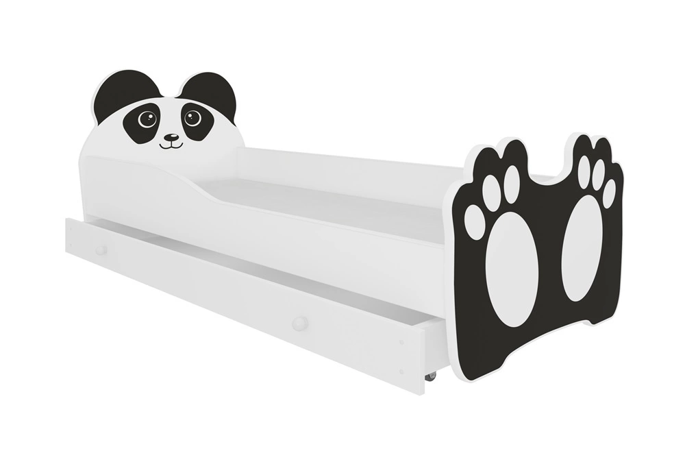 Łóżko Bear 70x140 cm biały / czarny małe łóżko z materacem i szufladą na pościel w kształcie misia z uroczym nadrukiem pandy