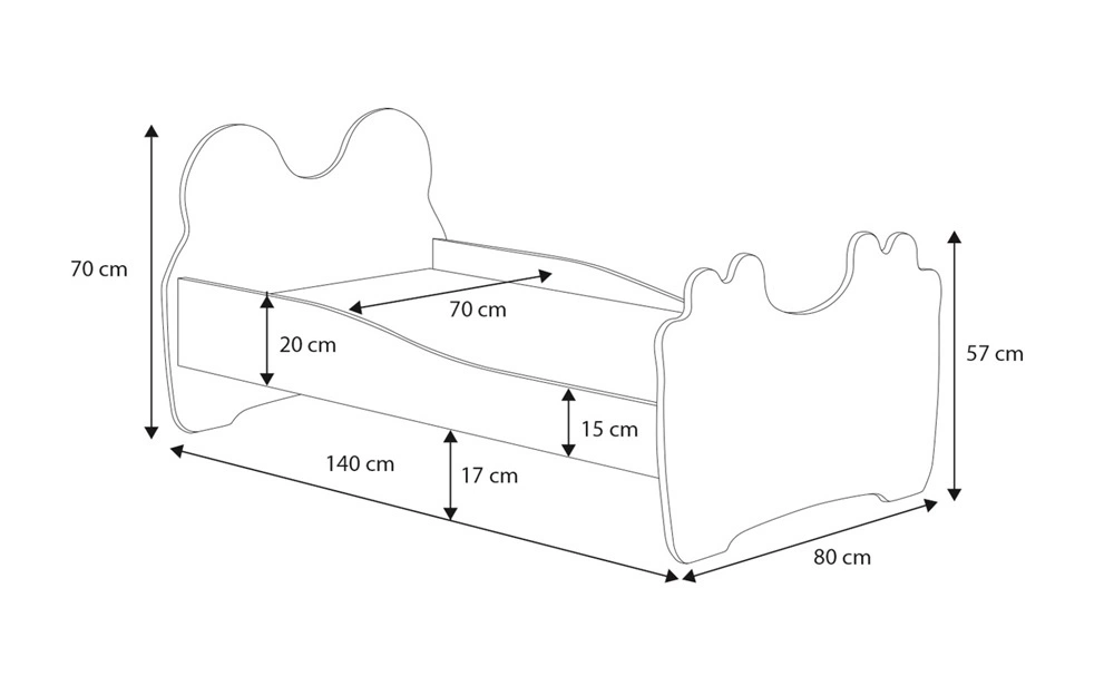 Łóżko Bear to doskonałe rozwiązanie do pokoju dziecięcego, które łączy nowoczesny design z funkcjonalnością, idealnie dopasowując się do potrzeb najmłodszych. Bajeczne łóżko w kształcie misia sprawia, że łóżko jednoosobowe z materacem doskonale wpisuje się w każdą aranżację pokoju dziecięcego, a także pokoju niemowlęcego dodając mu ciepła. Dzięki urokliwej konstrukcji, łóżko z pewnością przypadnie do gustu każdemu dziecku oraz stanie się ważnym akcentem aranżacji wnętrza. Elementem przyciągającym wzrok jest ozdobny nadruk kotka, który stanowi urocze wykończenie mebla.