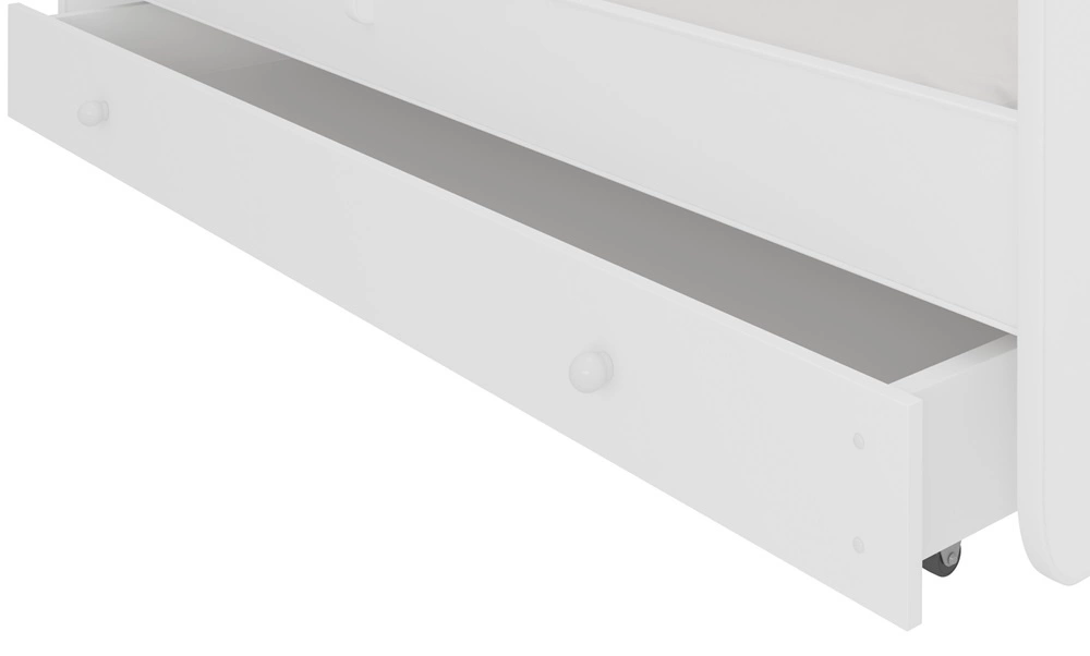 Łóżka dziecięce z materacem Bear zostały wykonane z solidnych materiałów, odpornych na uszkodzenia zapewniając niezawodność podczas codziennego użytkowania. Łóżko wyposażone jest w komfortowy materac piankowy ze zdejmowanym pokrowcem. Łóżko dziecięce uzupełniono w barierkę ochronną zapewniającą bezpieczeństwo podczas snu oraz funkcjonalną i pojemną szufladę na pościel i inne akcesoria.