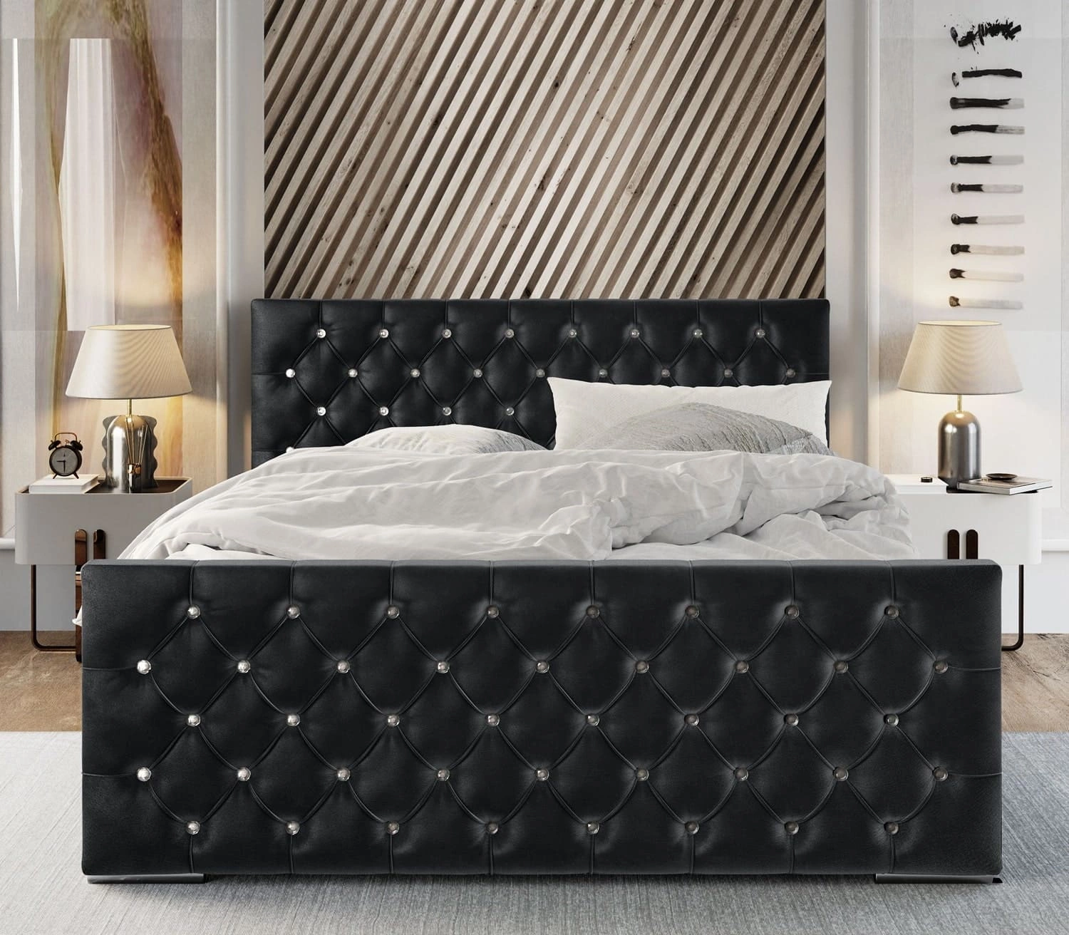 - Łóżko tapicerowane Uberaba to idealne rozwiązanie do sypialni urządzonej w stylu nowoczesnym, skandynawskim. Konstrukcja łóżka zapewniają dużą stabilność i wygodę użytkowania. Pikowania na wezgłowiu oraz zanóżku wykończone kryształkami przyciąga wzrok.