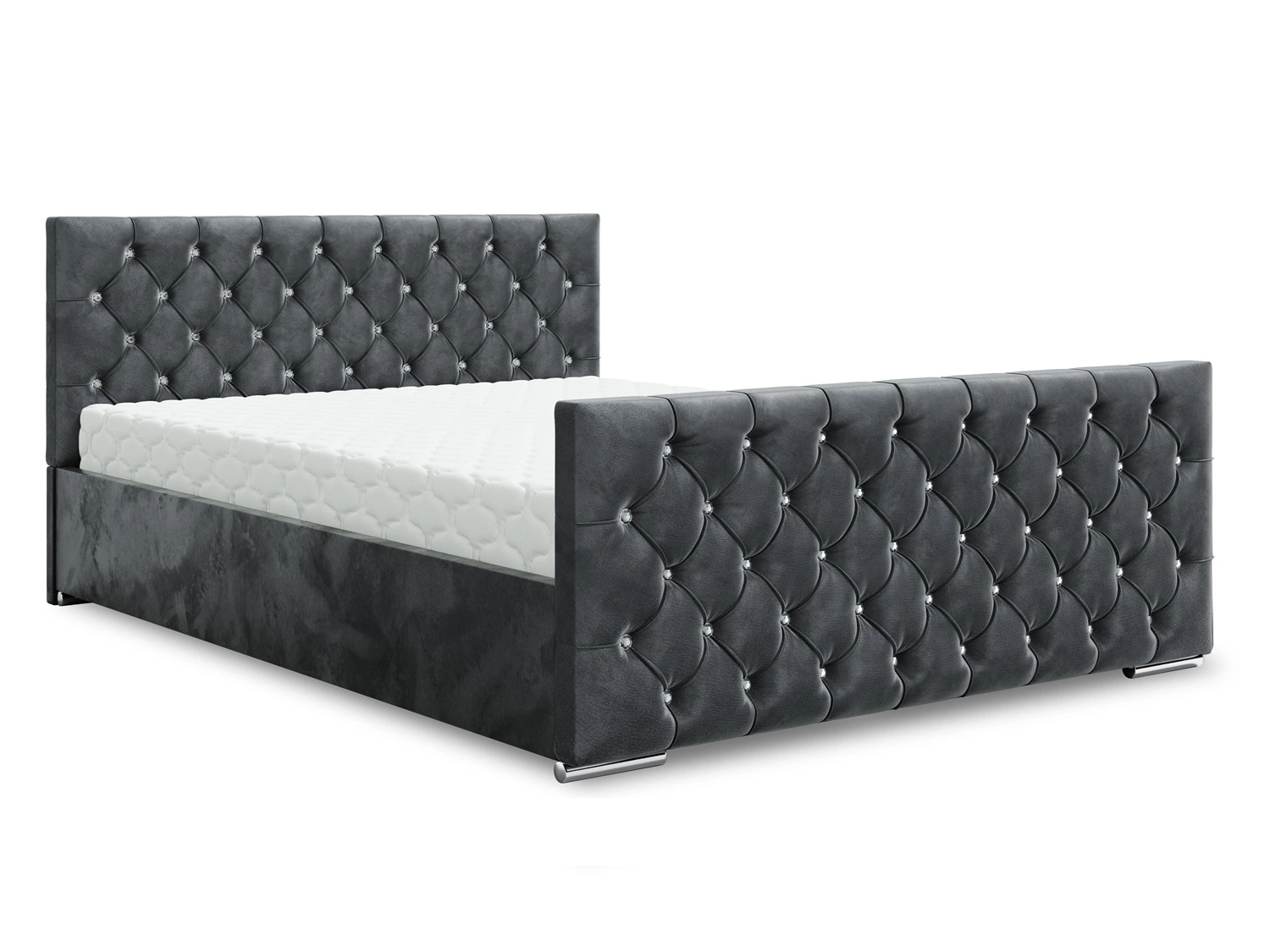 Łóżko wykonane z tkaniny typu velvet Monolith 97 gwarantuje najwyższy komfort i funkcjonalność podczas codziennego wypoczynku w sypialni. Tkanina posiada powłokę hydrofobową, co gwarantuje ograniczone wchłanianie cieczy. Ciekawa struktura tkaniny nadaje wyjątkowego charakteru. Dzięki wszystkim właściwościom użytej tkaniny, łóżko na długo zachowa swój pierwotny wygląd. Konstrukcja łóżka zapewnia dużą stabilność i wygodę użytkowania. Rama łóżka jest wykonana z drewna oraz płyty meblowej. Pikowane wezgłowie oraz zanóżek, które dodatkowo są wykończone guzikami w kształcie kryształków przyciągają wzrok i nadają łóżku szczególnego charakteru.