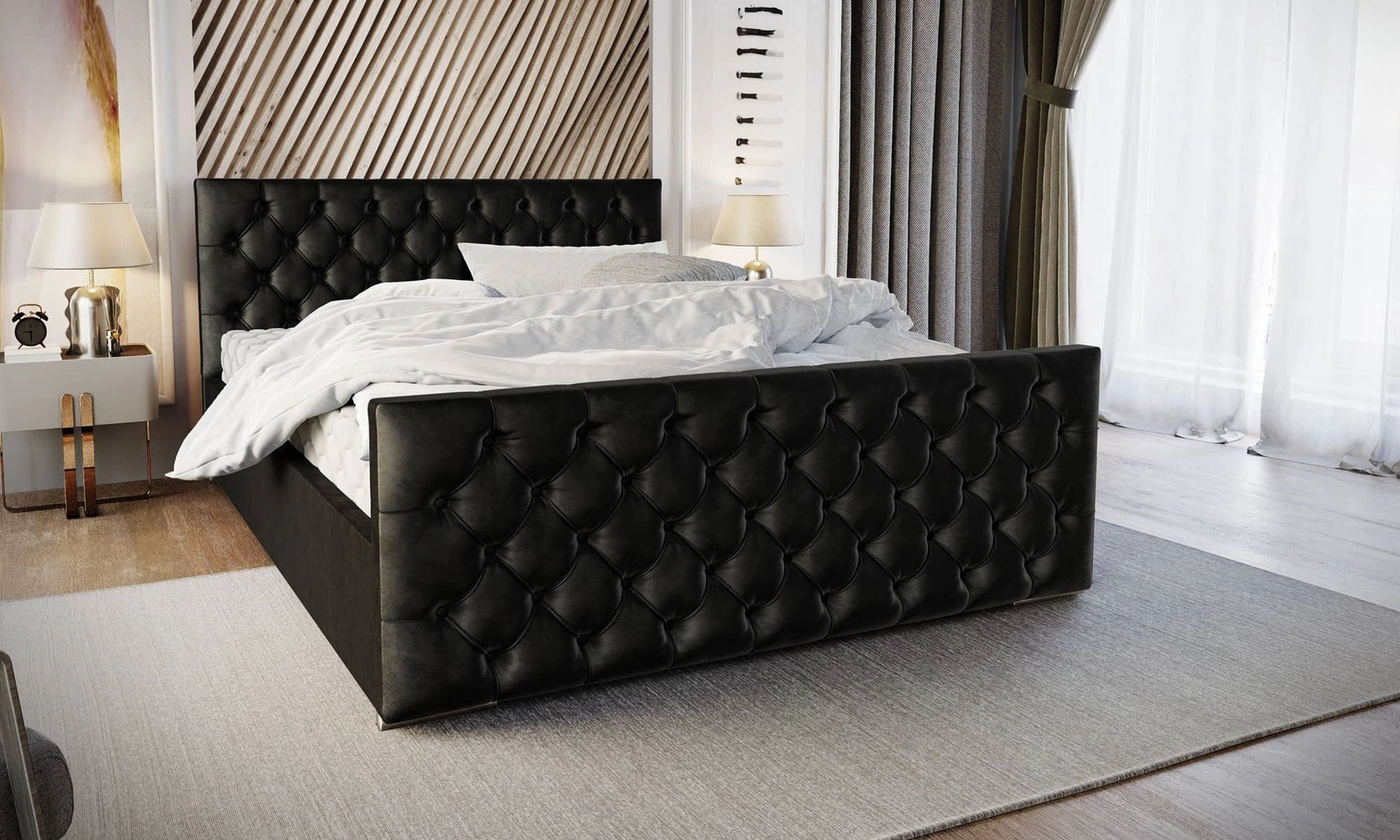 Łóżko wykonane z tkaniny typu velvet Monolith 97 gwarantuje najwyższy komfort i funkcjonalność podczas codziennego wypoczynku w sypialni. Tkanina posiada powłokę hydrofobową, co gwarantuje ograniczone wchłanianie cieczy. Ciekawa struktura tkaniny nadaje wyjątkowego charakteru. Dzięki wszystkim właściwościom użytej tkaniny, łóżko na długo zachowa swój pierwotny wygląd. Konstrukcja łóżka zapewnia dużą stabilność i wygodę użytkowania. Rama łóżka jest wykonana z drewna oraz płyty meblowej. Pikowane wezgłowie przyciąga wzrok i nadaje łóżku szczególnego charakteru. Dodatkową zaletą jest zanóżek, który posiada pikowanie jakie znajduje się na wezgłowiu.